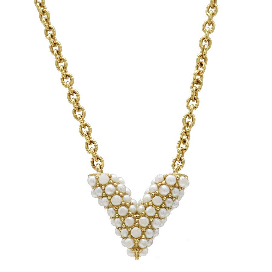 The Collier Essential V Pearl necklace is a reinterpretation of Louis Vuitton's iconic "V" shape.
