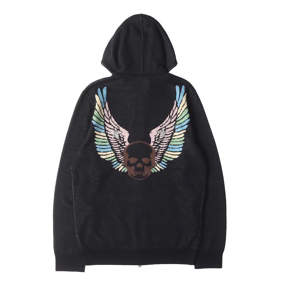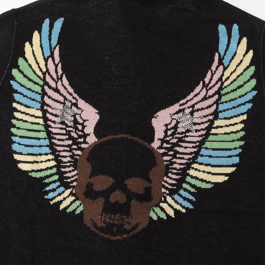 | 商品説明 | ・ミドルゲージのコットン/カシミヤ混紡ニット ・ジャガード織りのスカルウイングデザイン ・ロゴとスター部分のみラインストーン装飾 ・フルジップ |
