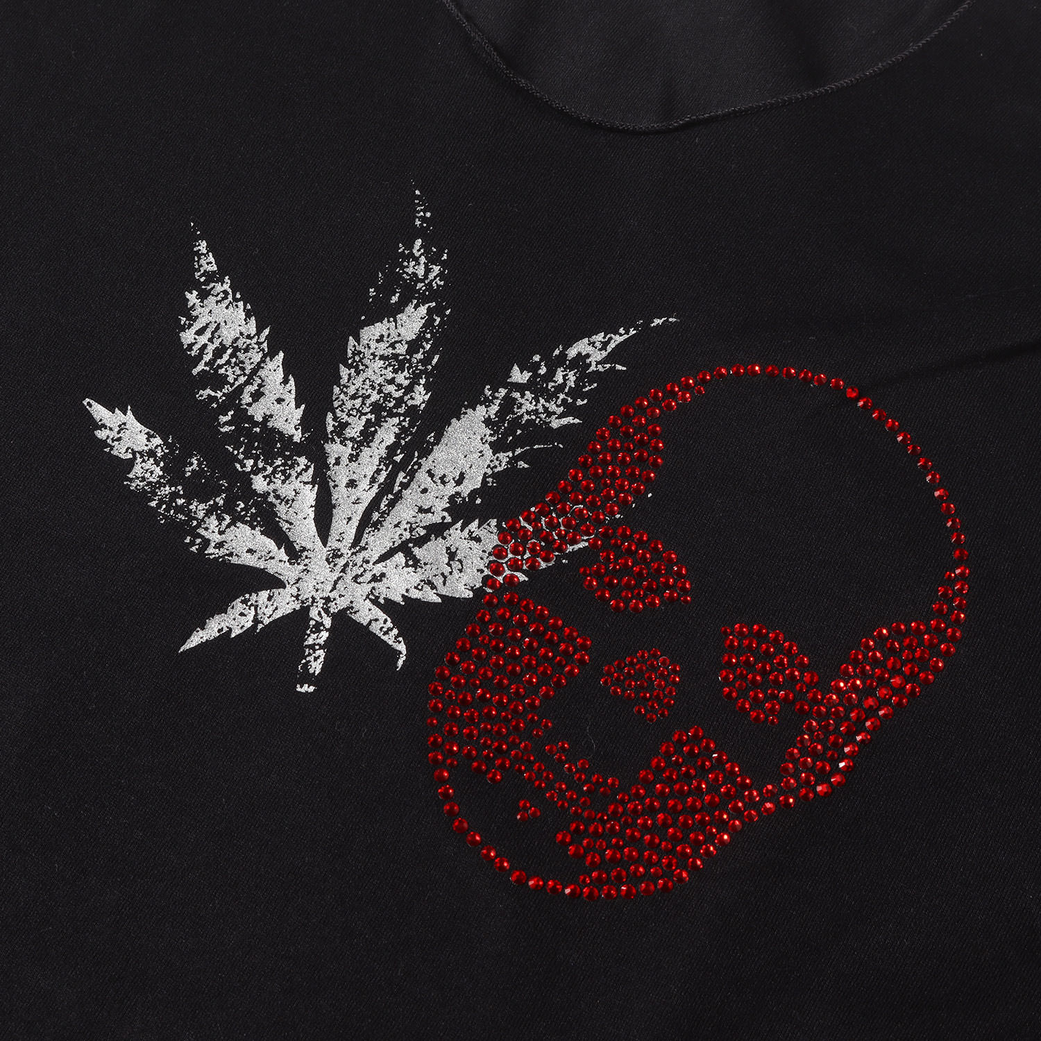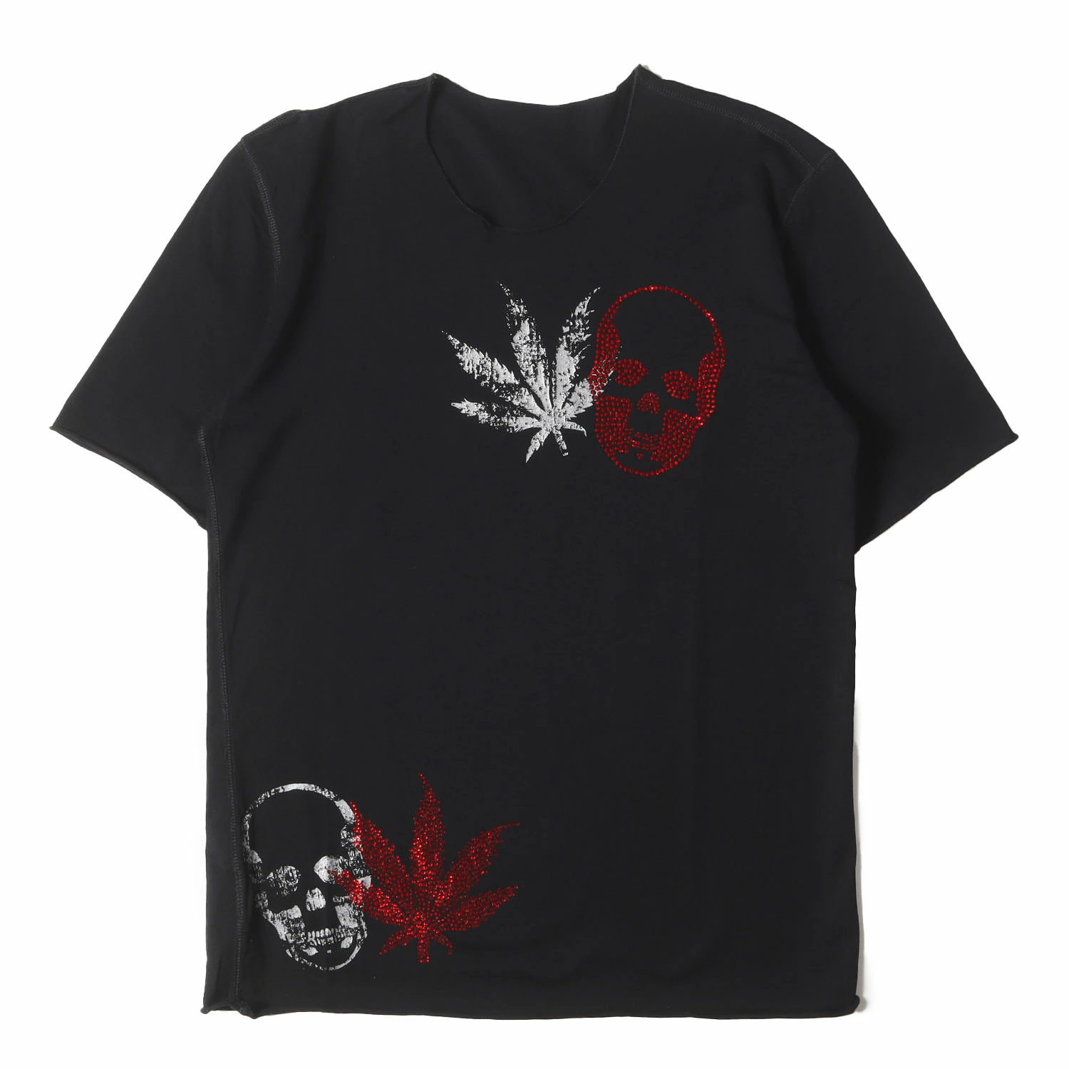| 商品説明 | 定番のスカル&マリファナをラインストーンとかすれプリントであしらったTシャツになります。 |