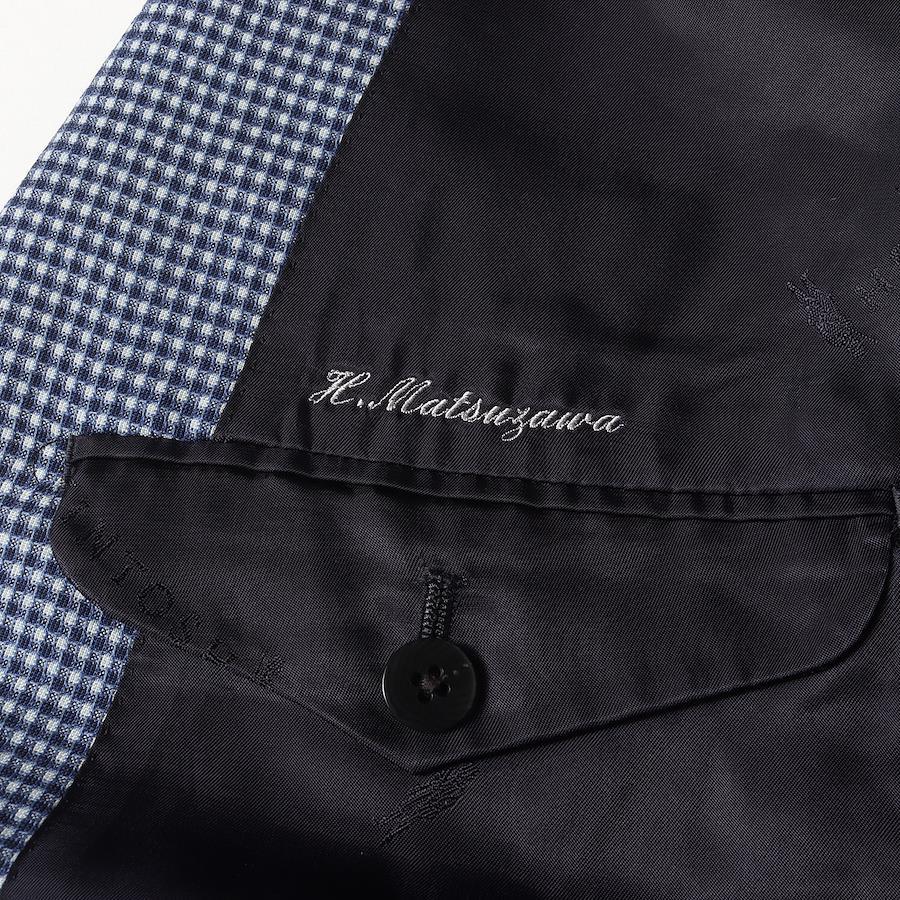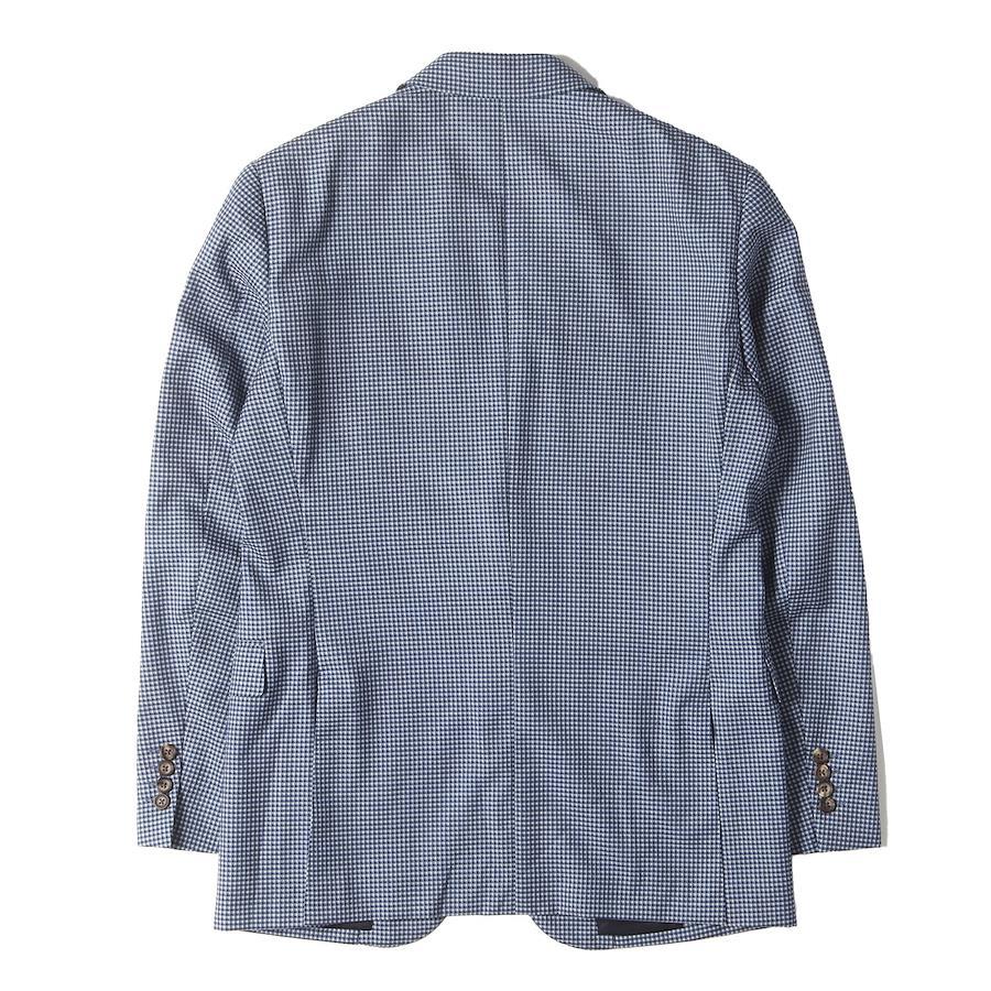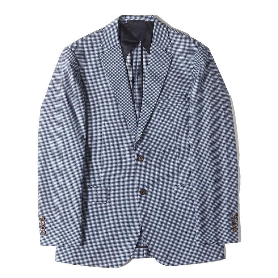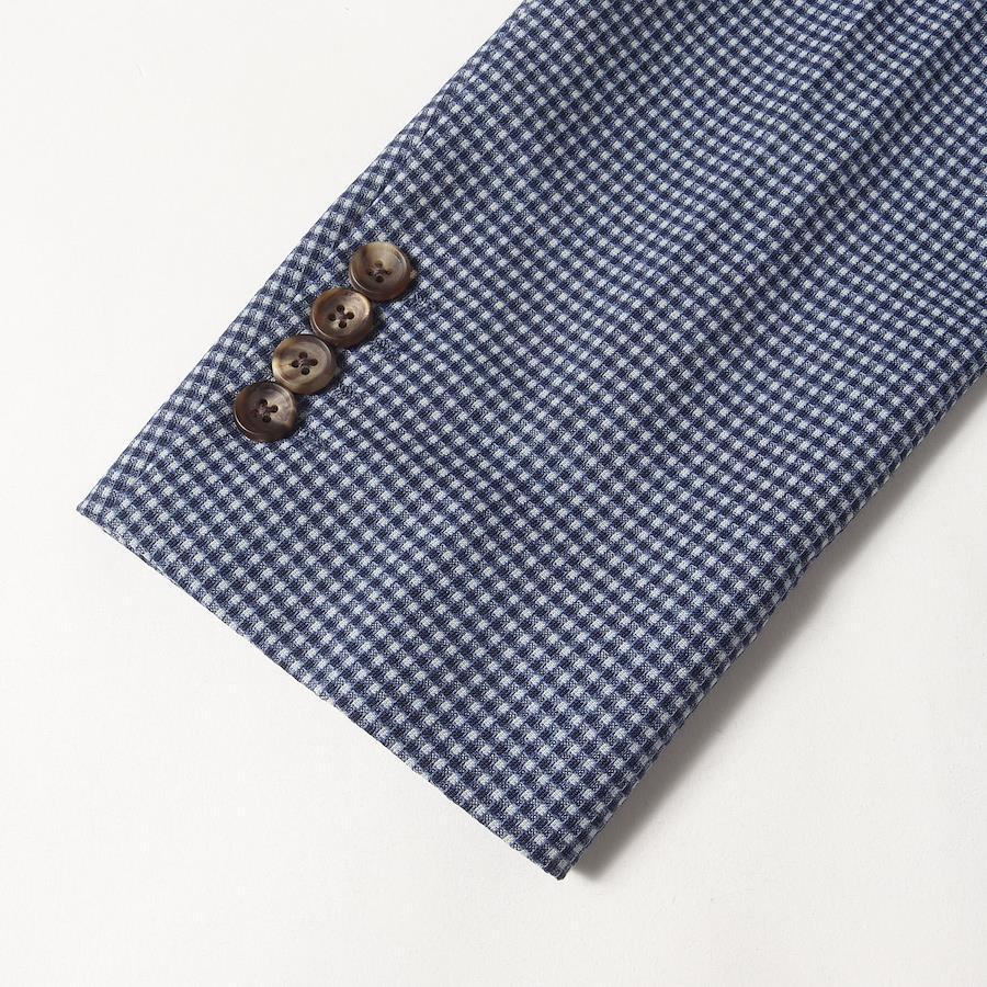 - ギンガムチェック柄があしらわれたSUPER120'Sウール生地を使用し、フロント2つボタン、ブランドロゴジャガード背抜き裏地、袖先開き見せ4つボタン、フロントダーツ、サイドベンツ仕様で仕上げられたテーラードジャケットです。