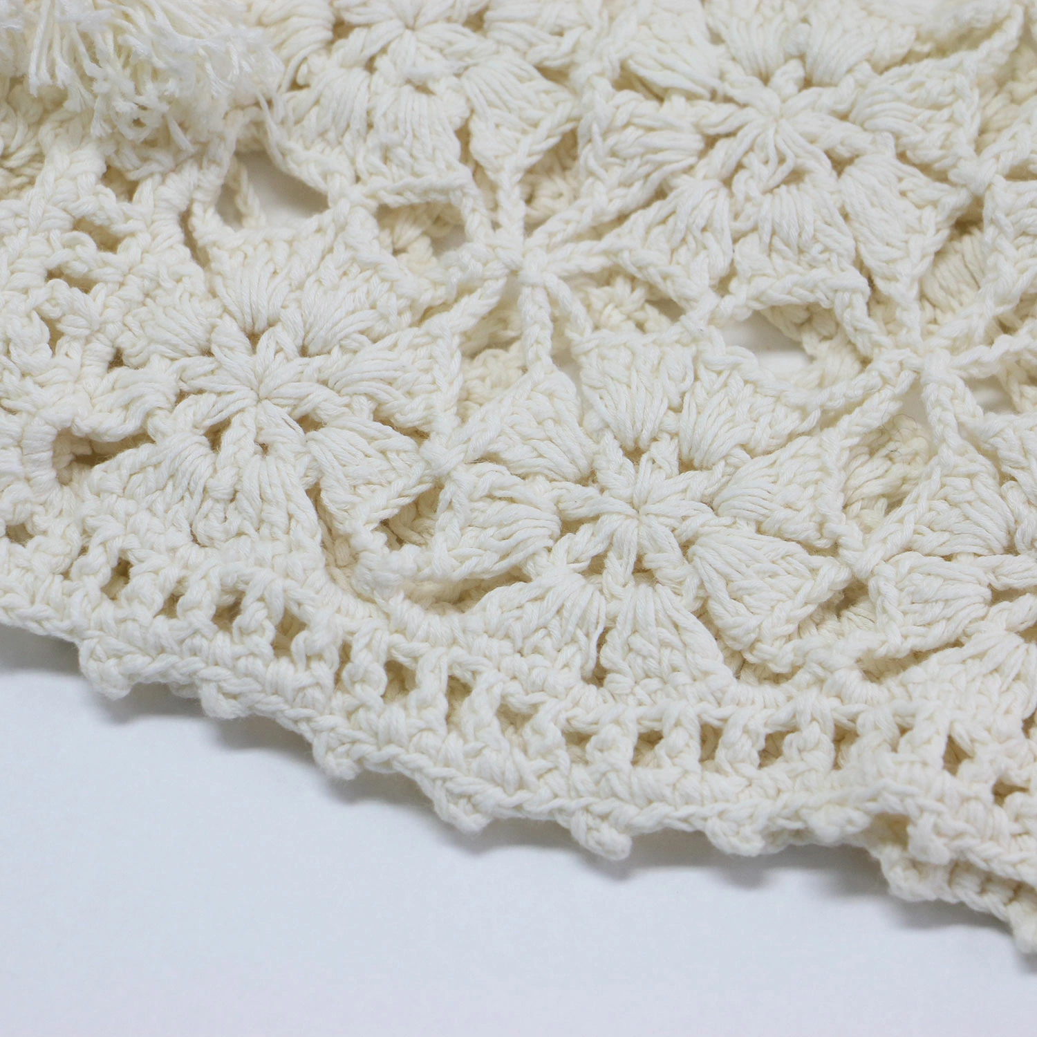 ◆ざっくりとした風合いと、繊細に絡み合ったモチーフ柄がふっくらとした立体感を生み出すクロシェットデザイン
