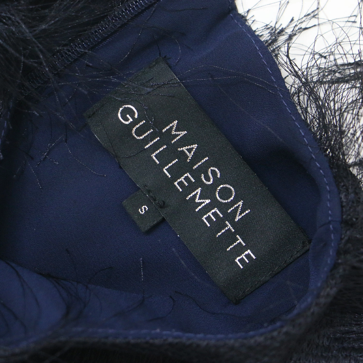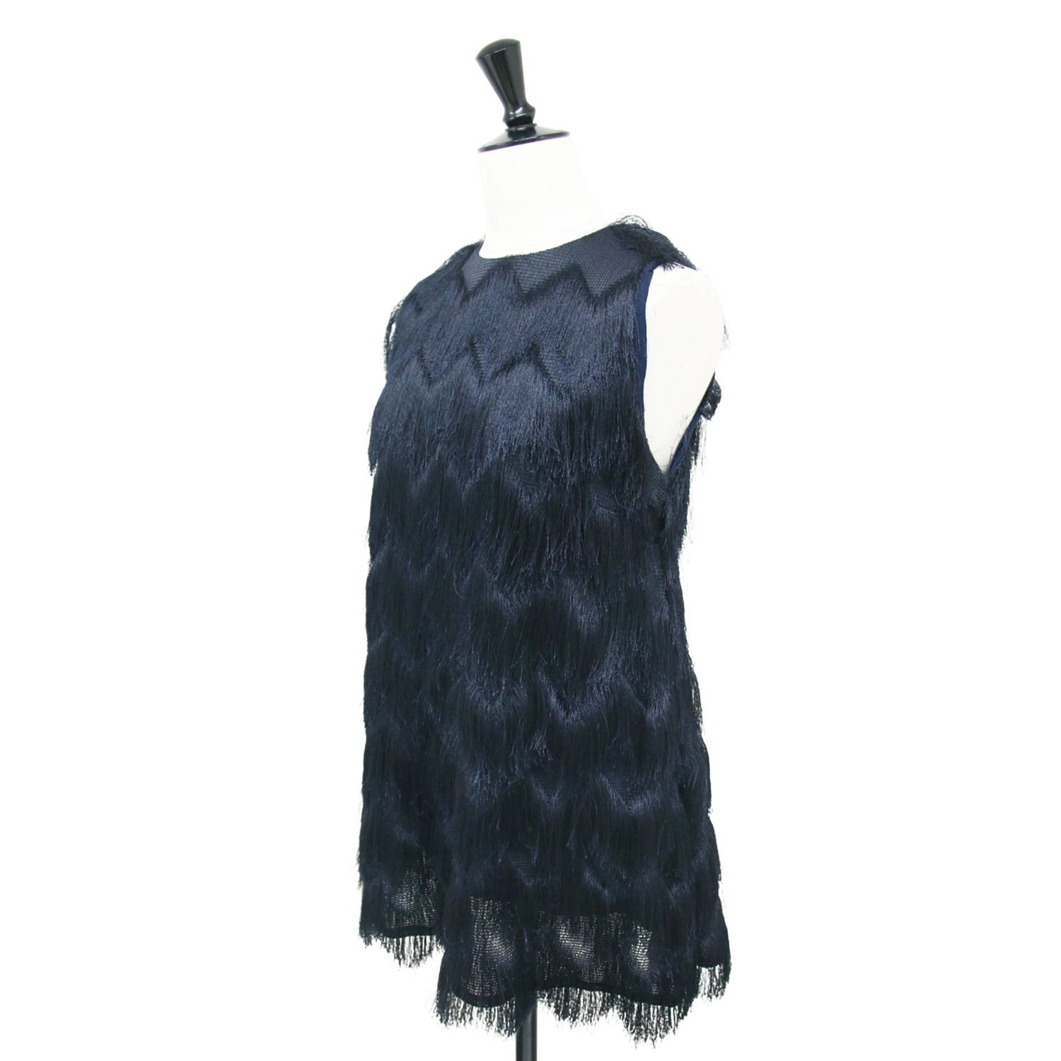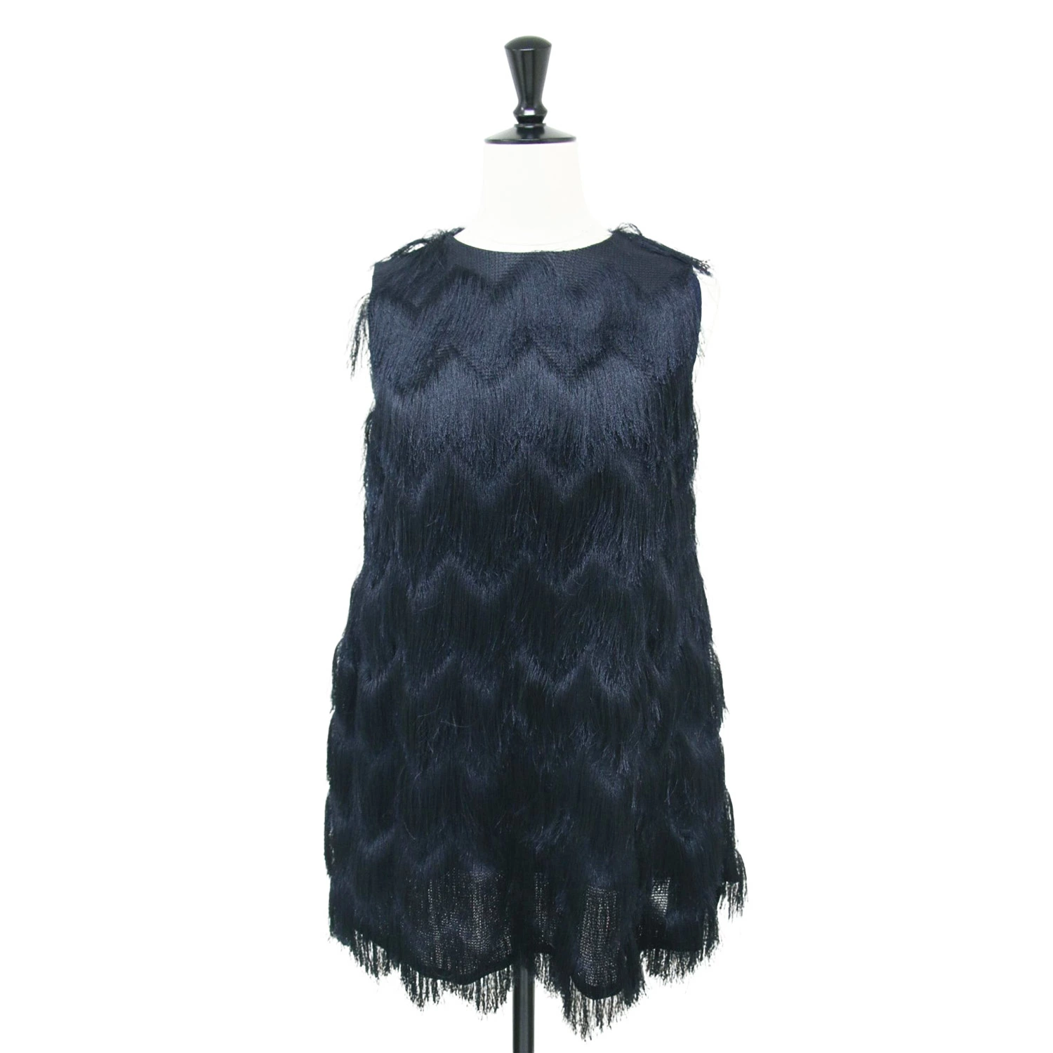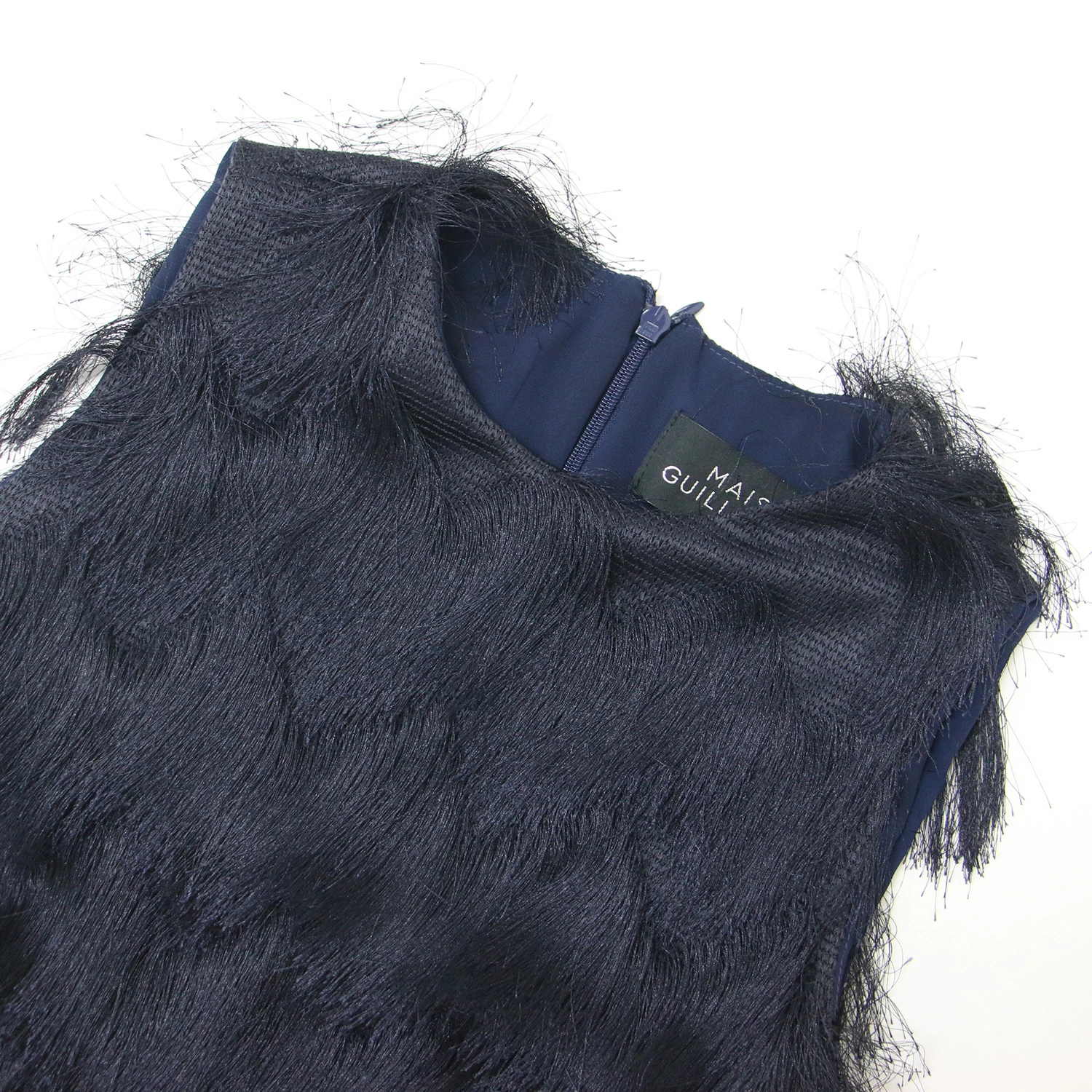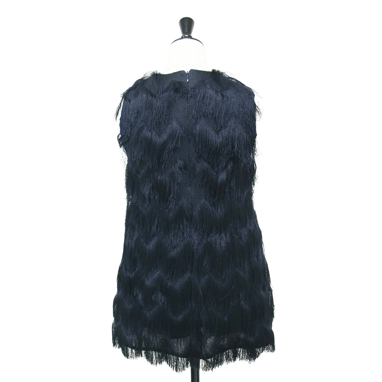 MAISON GUILLEMETTE navy blouse, size S, Spring/Summer 2024, sleeveless fringe blouse, PACOME BLOUSE, tunic-length, A-line, top, made in France, women's, pre-owned, excellent condition, K4614