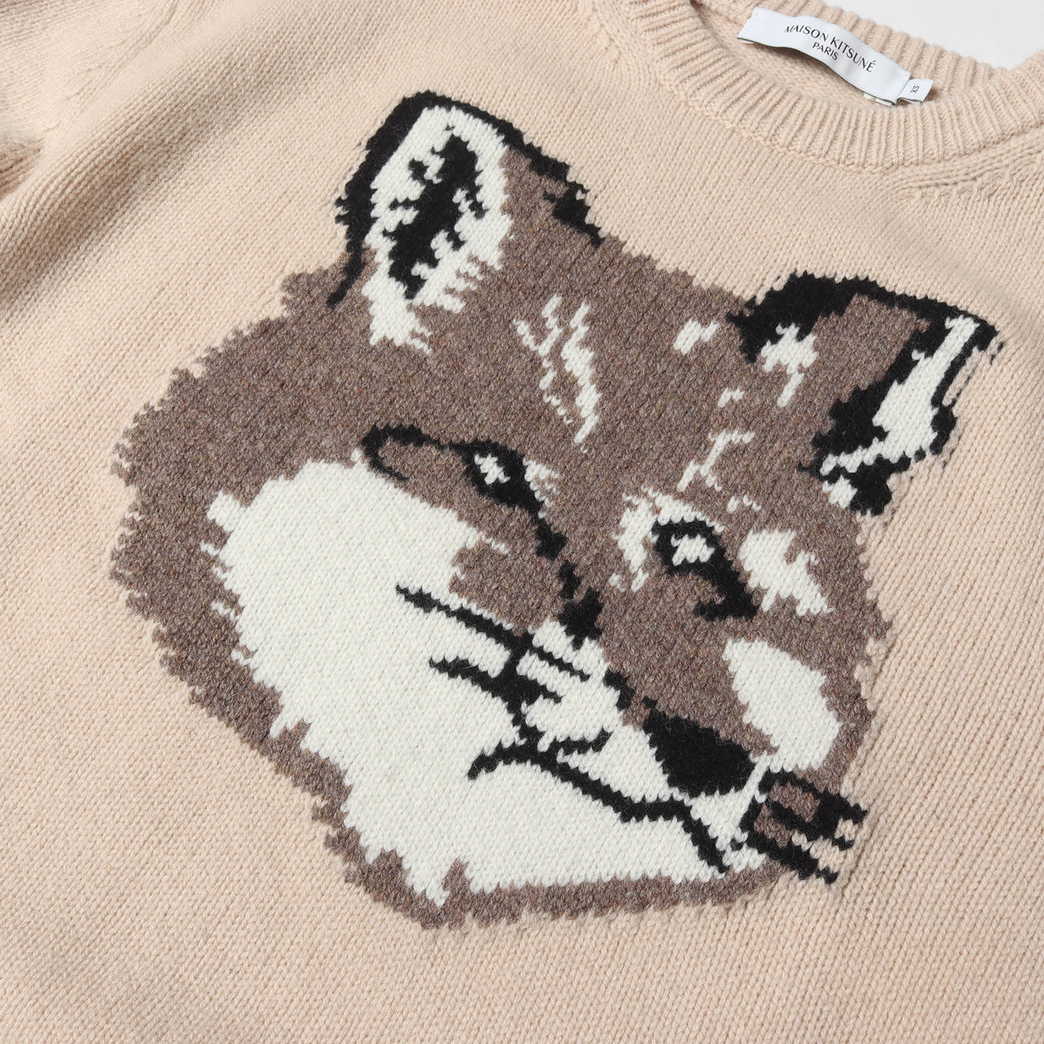 - 大きなキツネをあしらったミドルゲージのウールニットセーターになります。