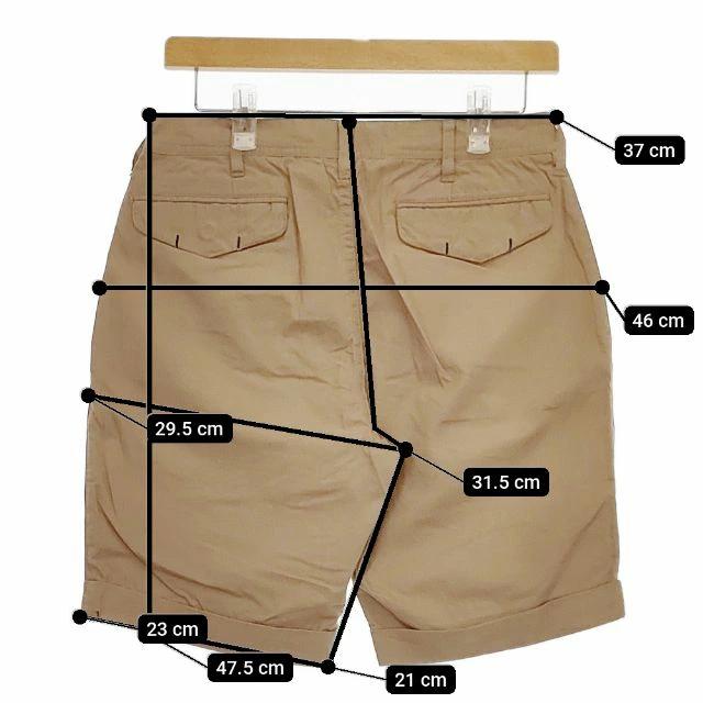 | 実寸サイズ | 総丈:約47.5cm ウエスト:約37cm 股上:約31.5cm 股下:約21cm ヒップ:約46cm ワタリ幅:約29.5cm 裾幅:約23cm ※記載以外のサイズが合わないことを理由とした返品はできませんので、 記載部分以外で実寸サイズの気になる箇所があれば必ず購入前にご質問ください。 |