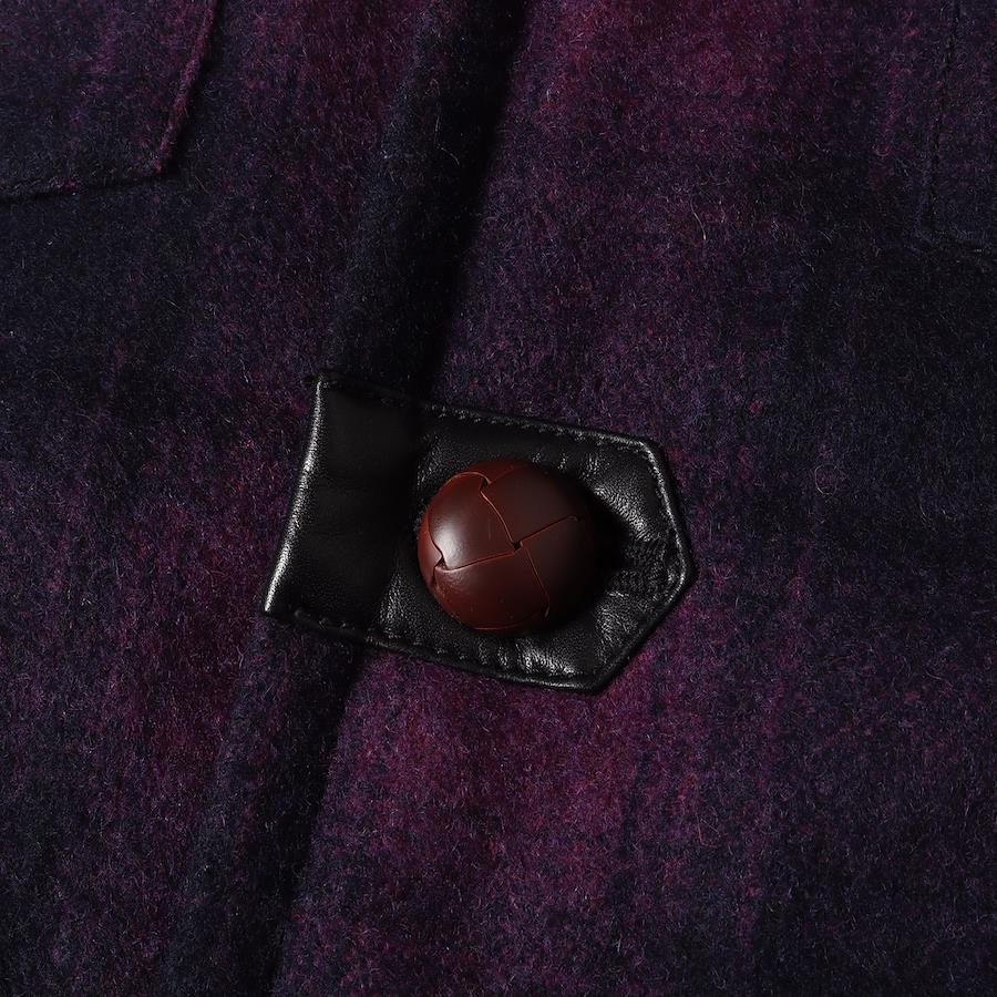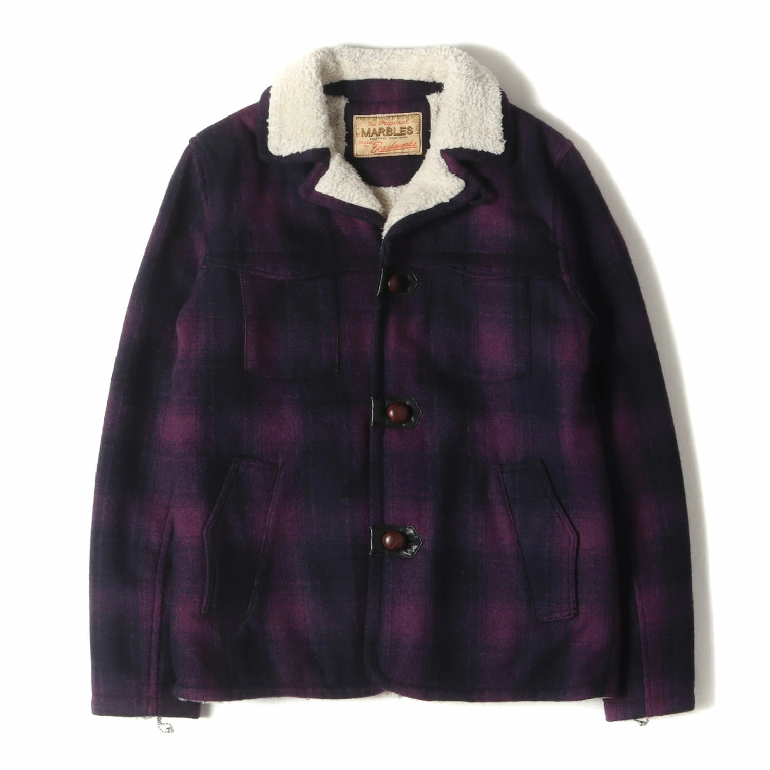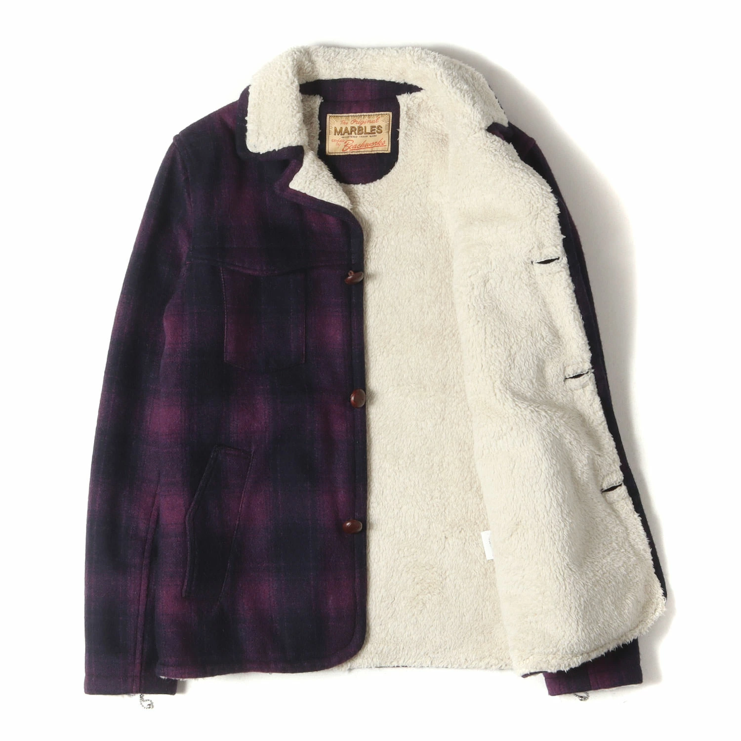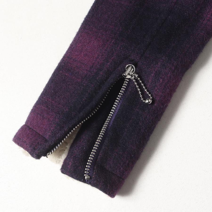 - オンブレチェック柄のウール素材を使用し、襟と裏地をソフトなパイルボアであしらったバスケットボタンジャケットになります。