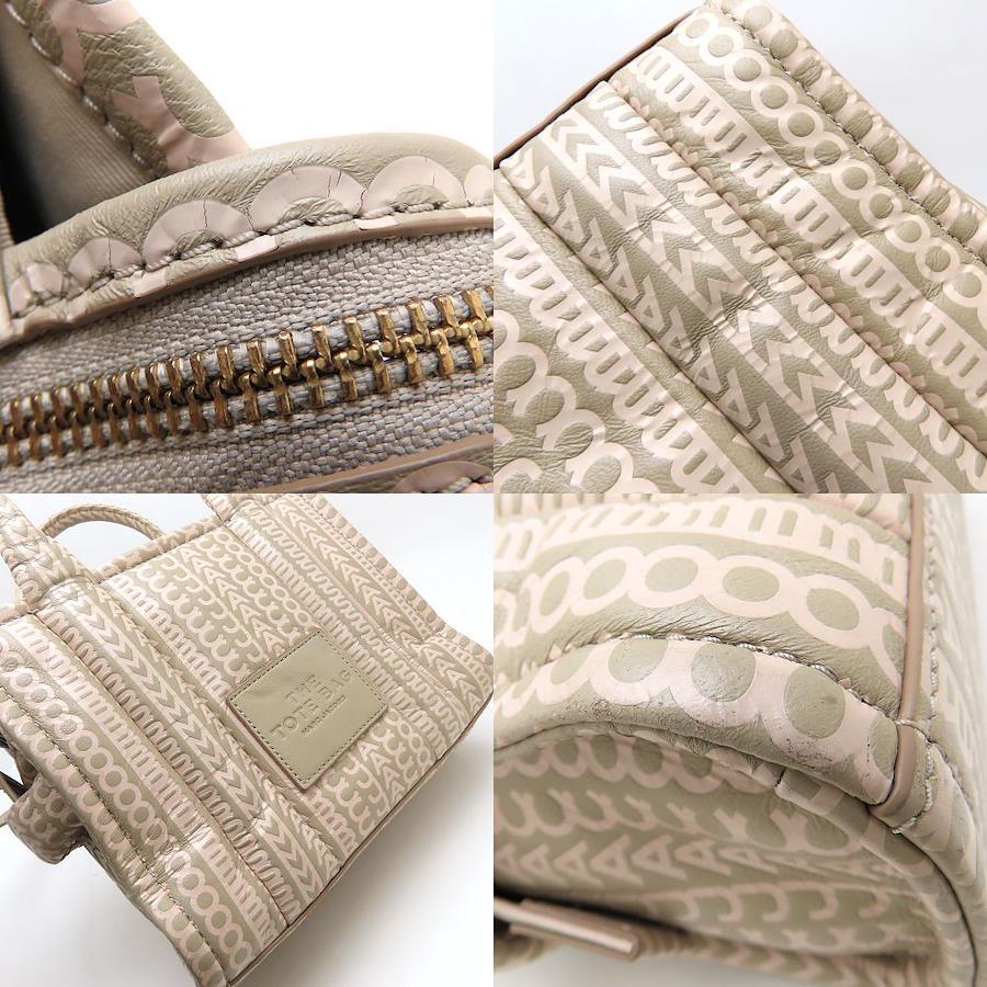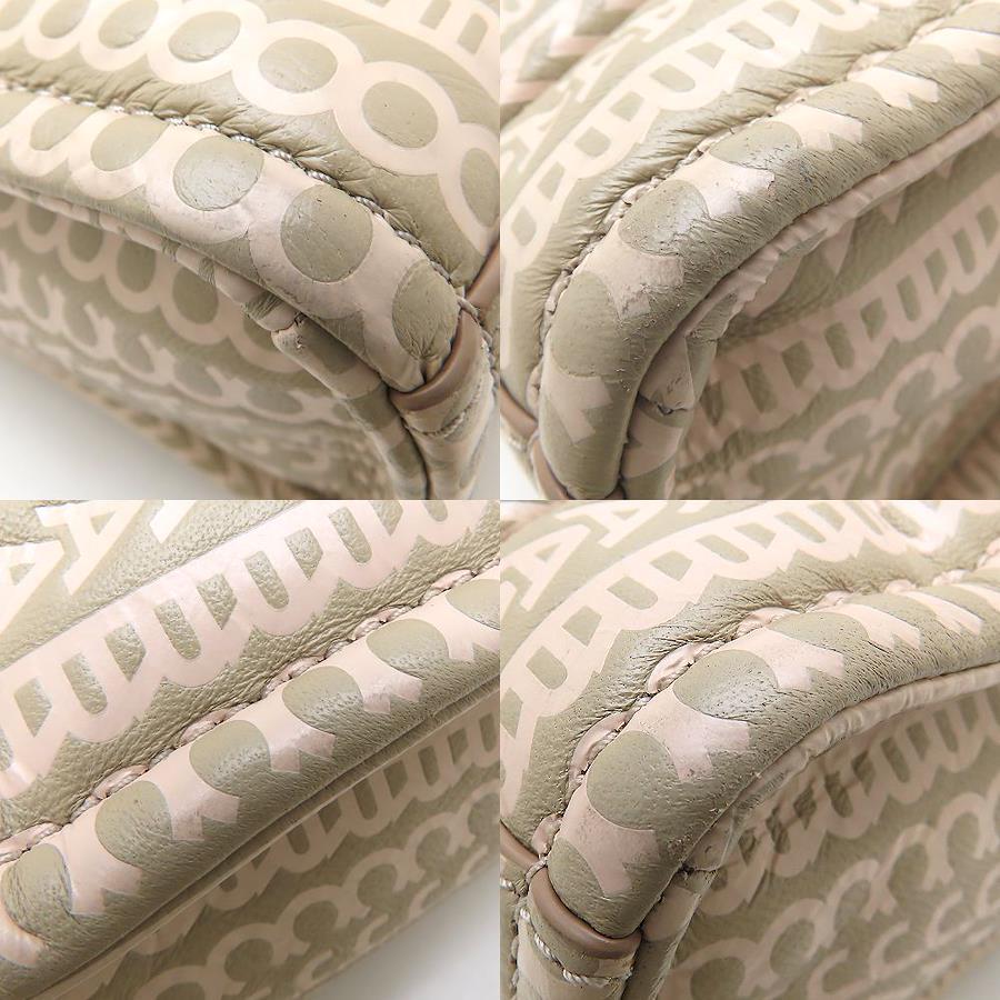 [外・表面] シワ [外・ハンドル] キズ [外・形状] 凹み [外・角] キズ / 汚れ / スレ [外・縁] 汚れ [外側] ファスナー付近のプリント部分所々ヒビ [におい] 香水(強) [金具部分] 一部キズ [内側] 汚れ / 押され跡 / 使用感あり