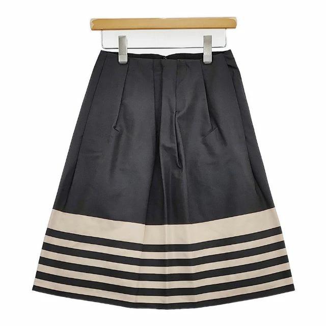 Pre-owned MARGARET HOWELL 5-1004M Cotton Silk Skirt, Navy and Beige, 578-132904.