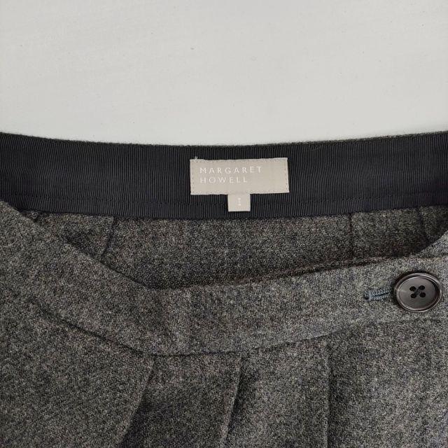 Pre-owned MARGARET HOWELL pleated wool wrap skirt, gray, 578-232209, 5-1030T.