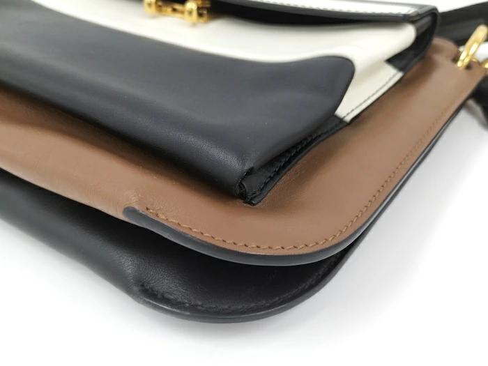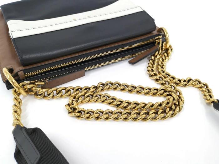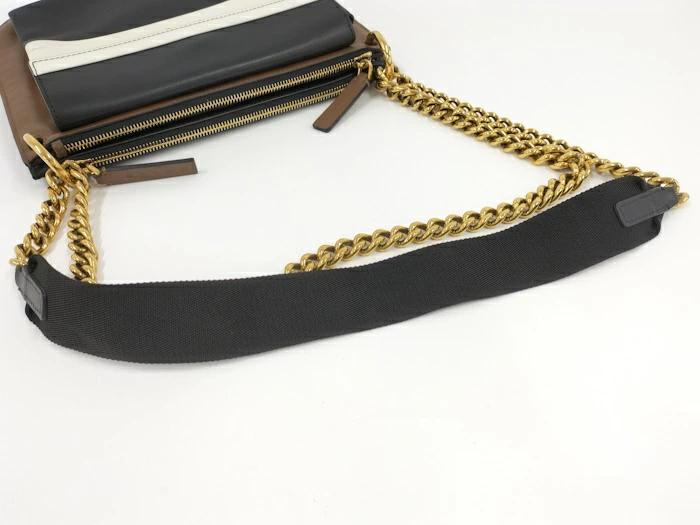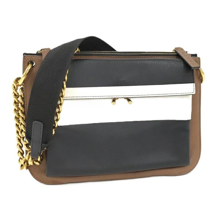 MARNI Chain Shoulder Bag Leather Black Brown White