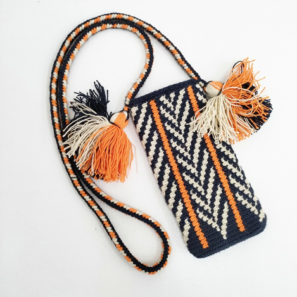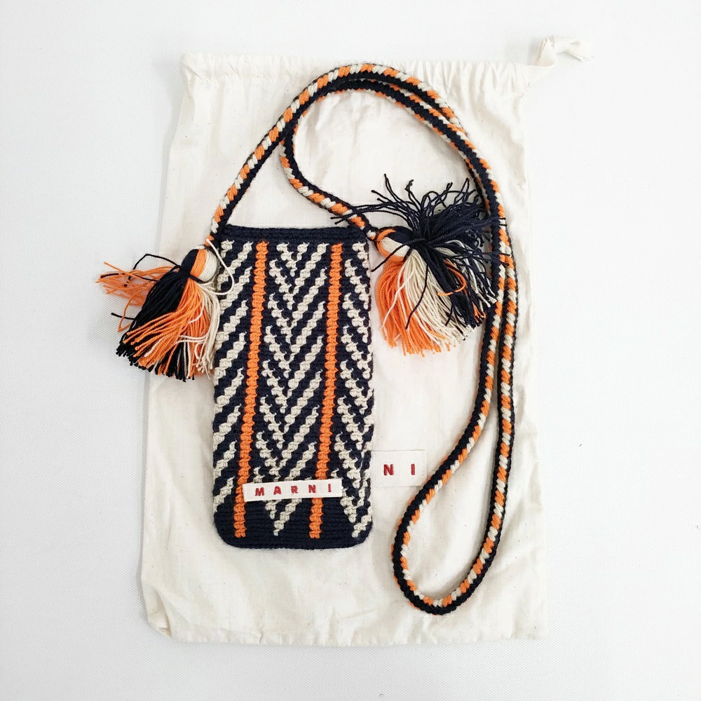 MARNI 2024AW Crochet Knit Tassel Smartphone Shoulder Bag, Navy and Orange, Men's, Pre-owned, 5-0210G