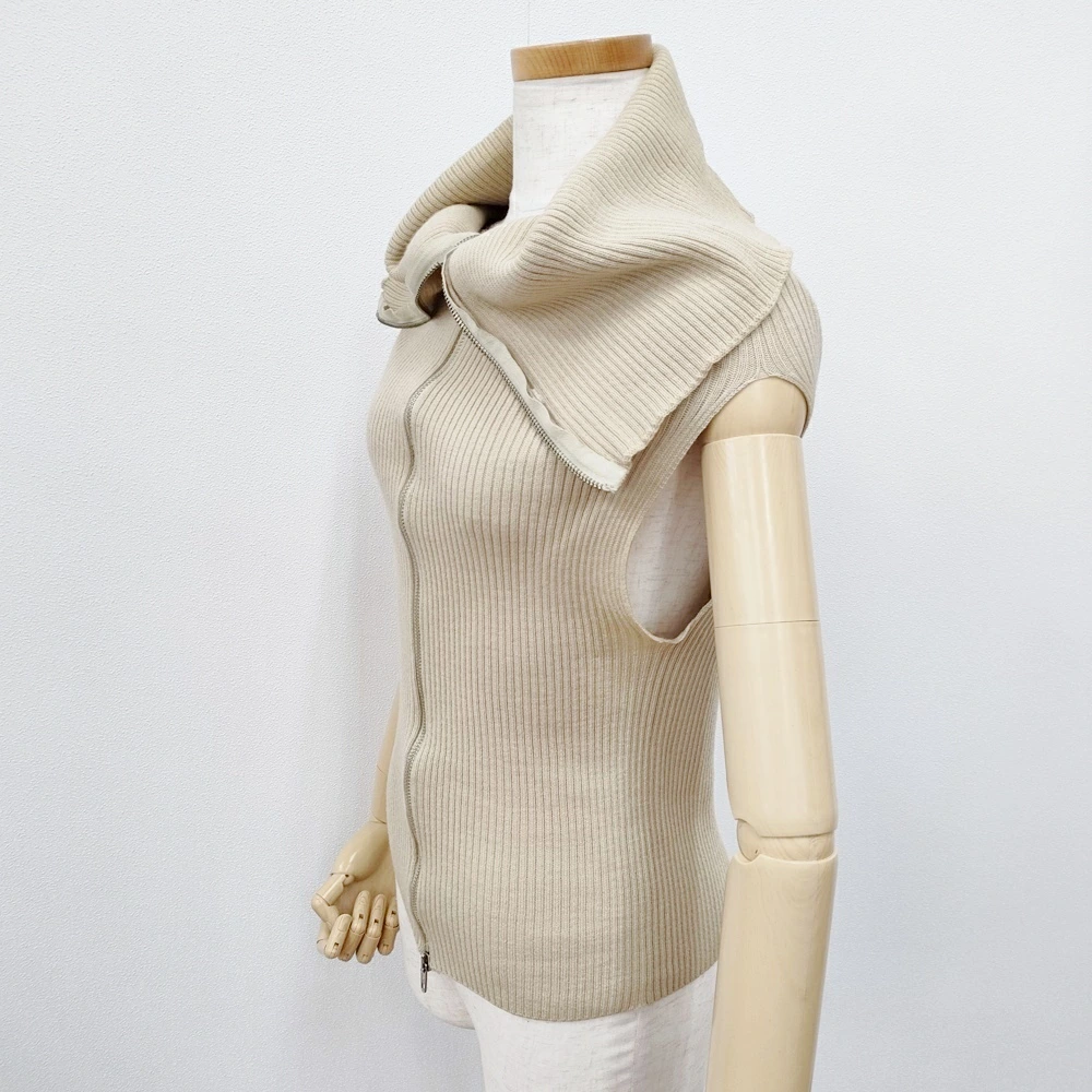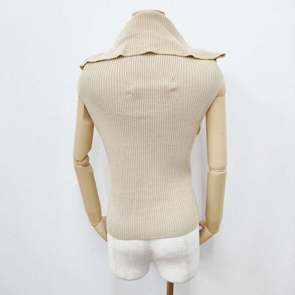 Pre-owned Martin Margiela flat-patterned, artisanal driver's knit vest, white tag, Horizonti, made in Italy, beige, women's, 5-0811T.