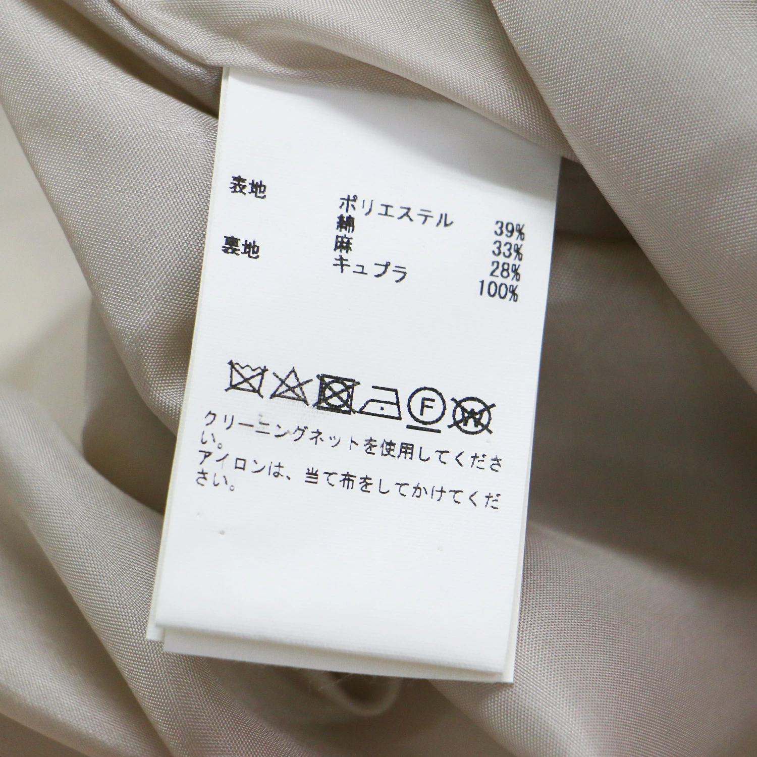 - 表地 ポリエステル 39% コットン 33% リネン 28% 裏地 キュプラ 100%