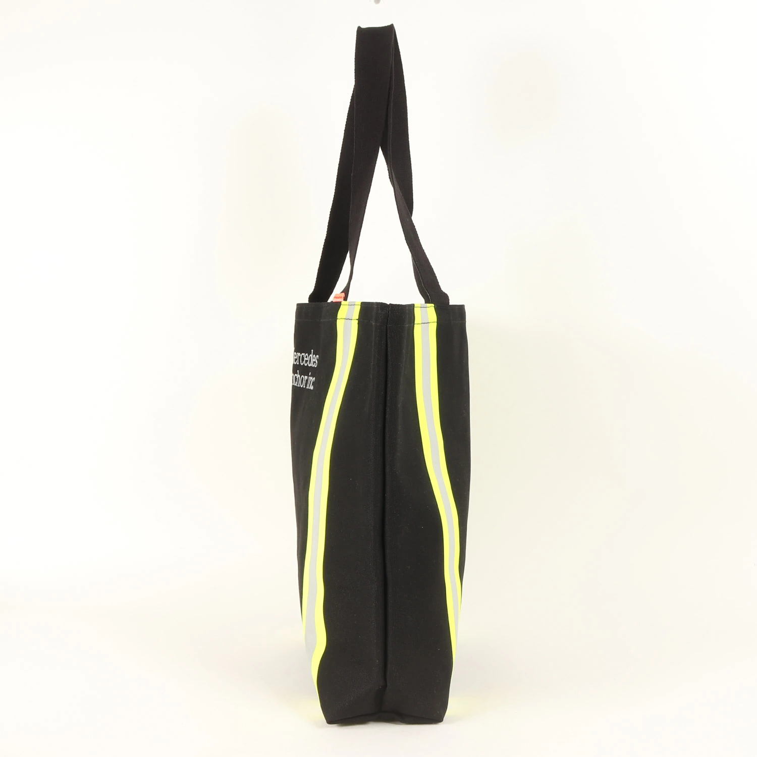 - リフレクターラインとブランドロゴ刺繍をあしらったキャンバストートバッグになります。