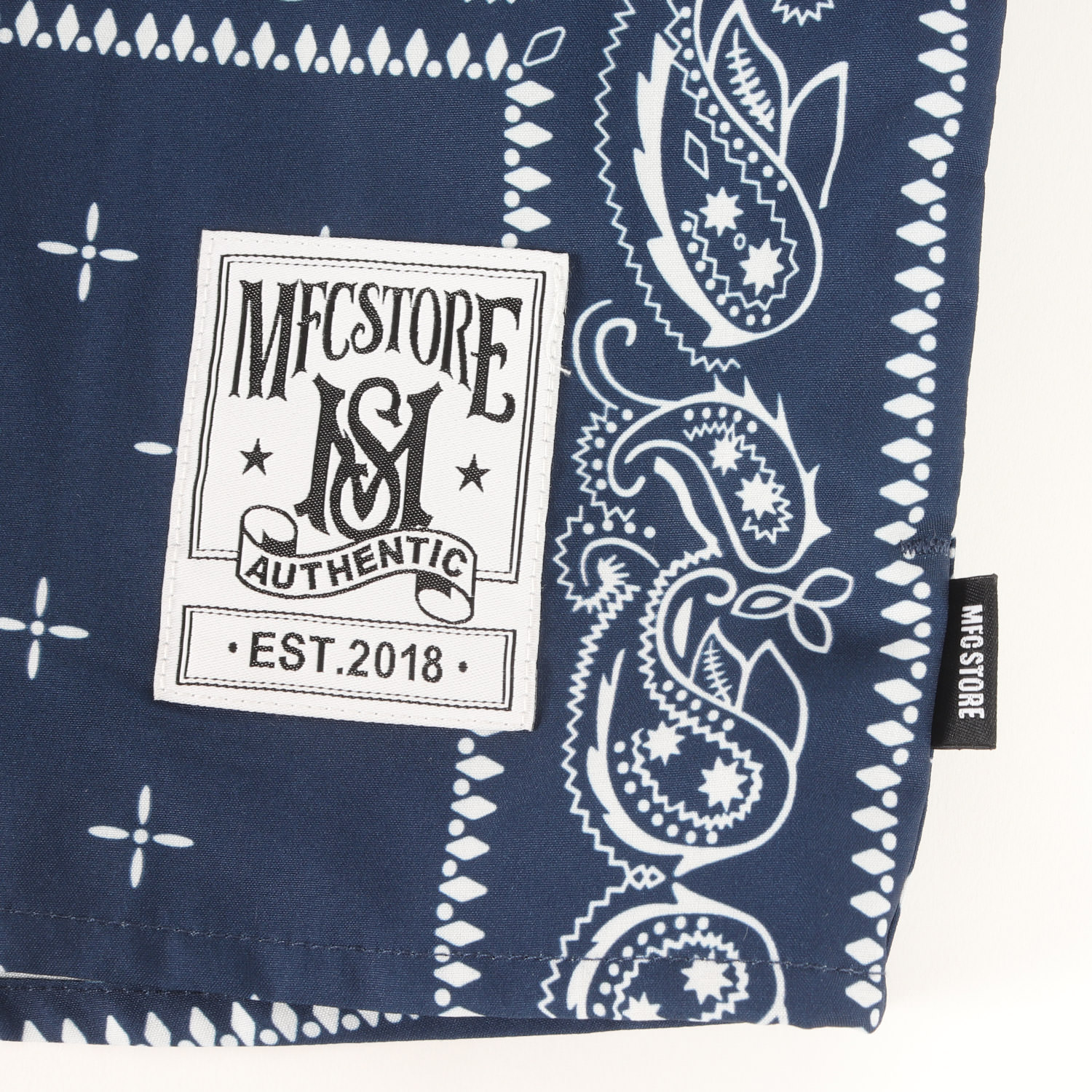 MFC STORE Men's Long Sleeve Casual Shirt, Size L, Bandana Print Open Collar Shirt (MS LOGO BANDANA L/S SHIRT), Navy Blue, Pre-owned, K4618