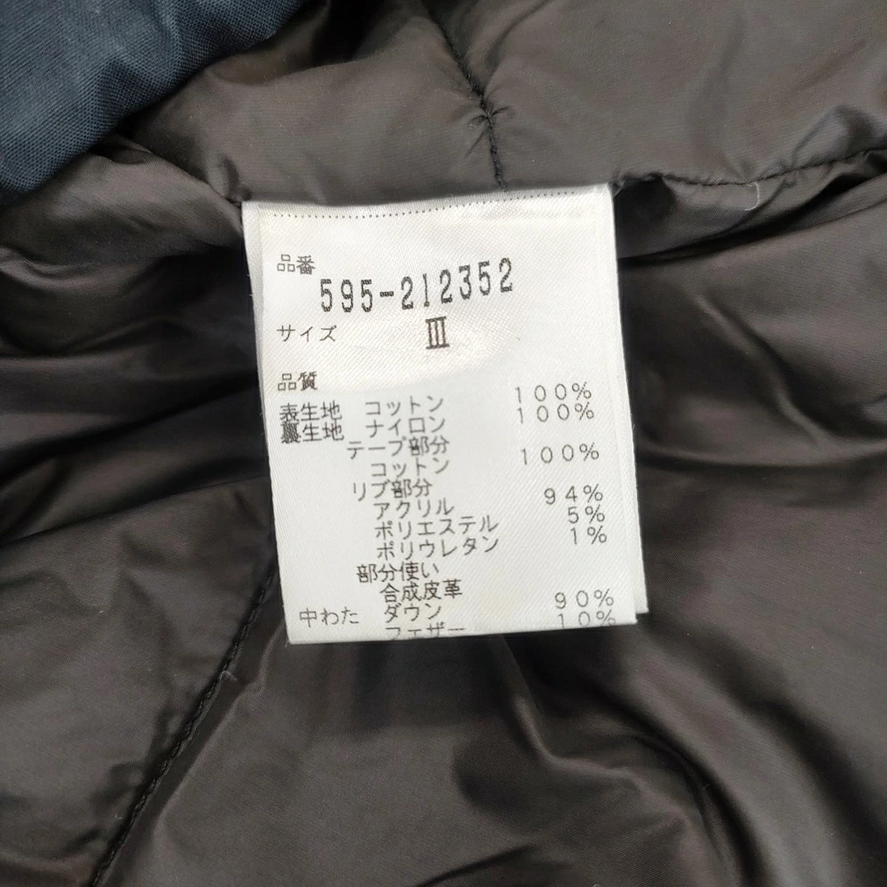 | 品質表示 | 表生地:コットン100% 裏生地:ナイロン100% テープ部分:コットン100% リブ部分:アクリル94%、ポリエステル5%、ポウレタン1% 部分使い:合成皮革 中わた:ダウン90%、フェザー10% |