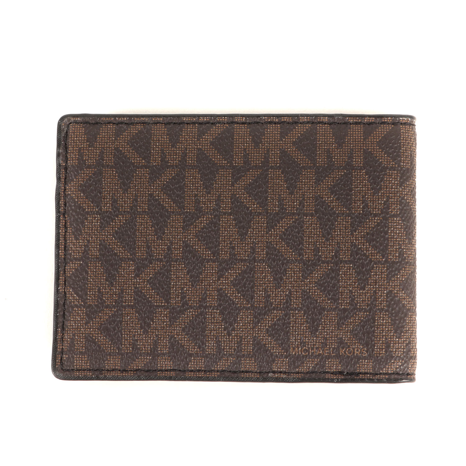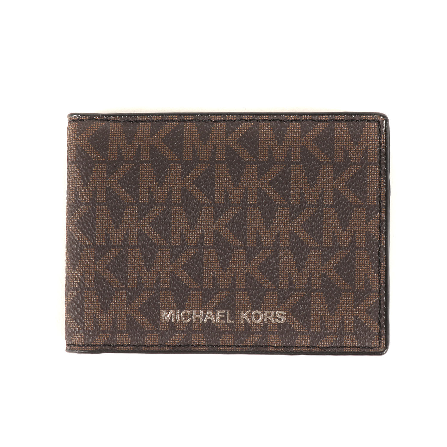 | 商品説明 | ブランドロゴ刻印が施されたしっかりとしたレザー素材を使用し、全体にMKシグネチャーロゴが配された二つ折りカードケースです。 仕様 カードポケット×4 |