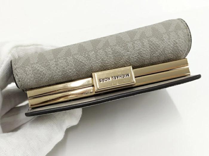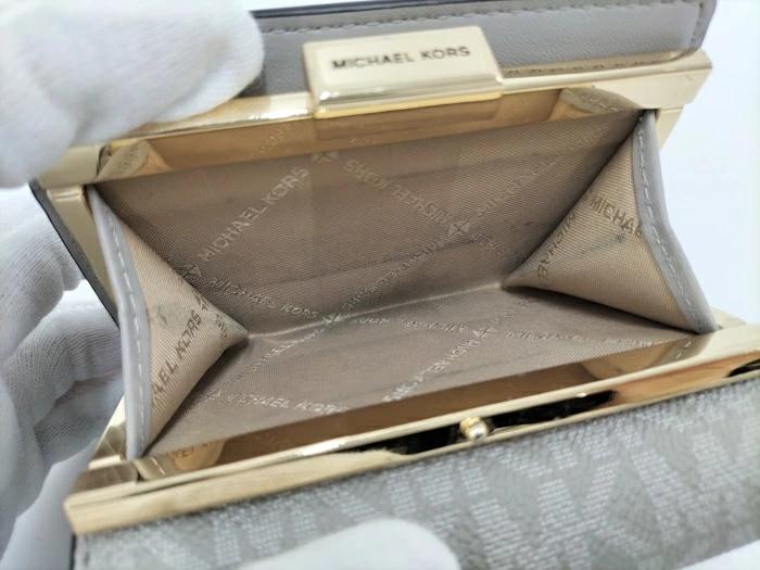 MICHAEL KORS Bi-fold Compact Wallet with Clasp Closure and PVC Coating, Gray