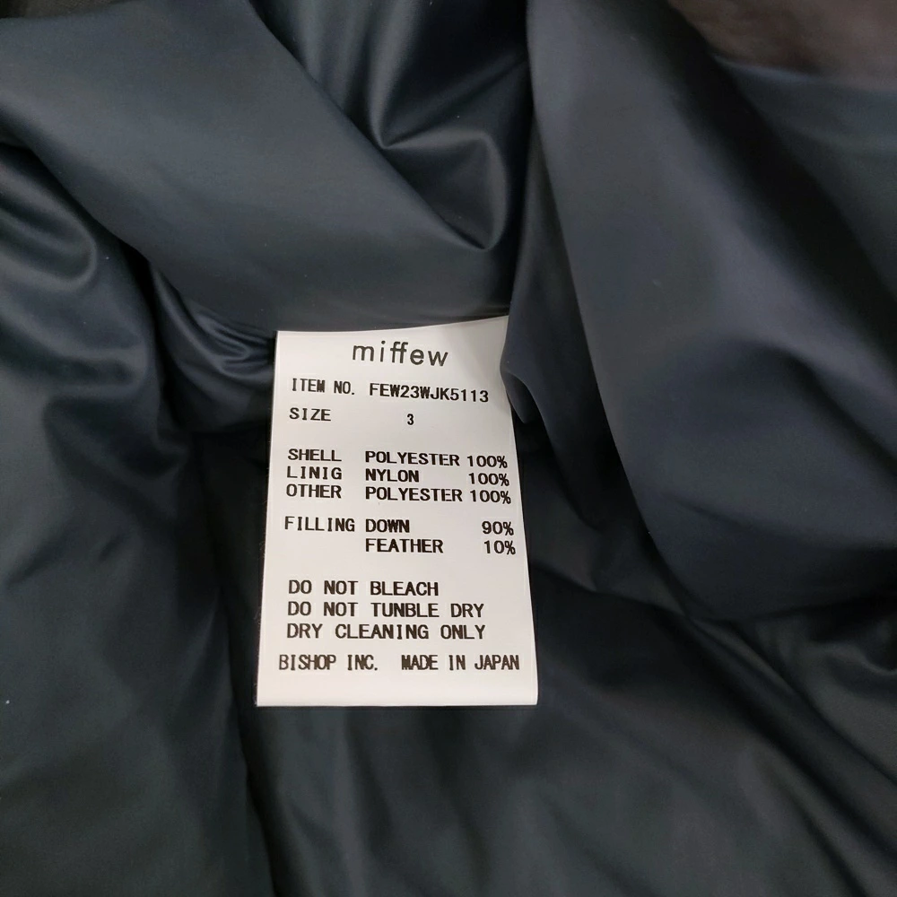 | 品質表示 | 表地/ポリエステル100% 裏地/ナイロン100% 別布/ポリエステル100% 中綿/ダウン90% フェザー10% |