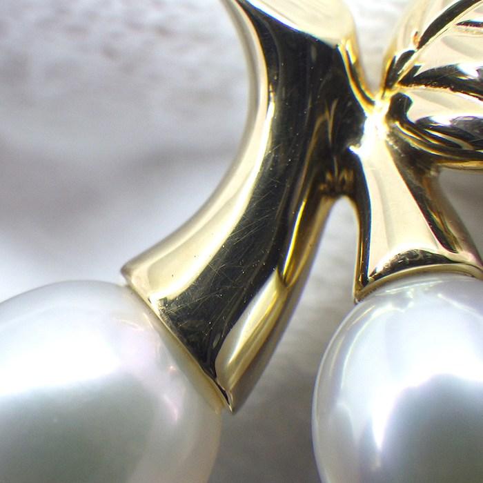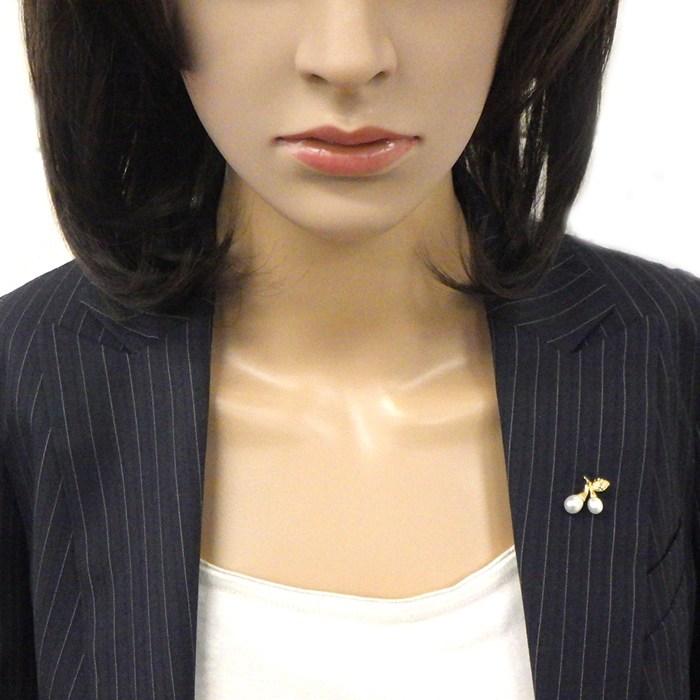 ■商品名MIKIMOTO ピンブローチ チェリー リーフ モチーフ パール 5.6/7.4mm珠 K18YG 【中古】