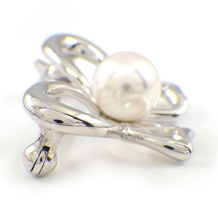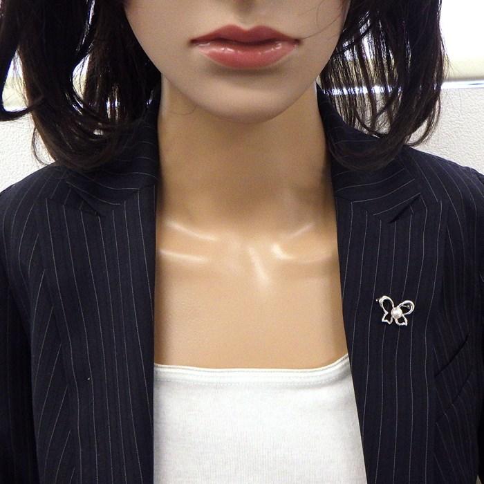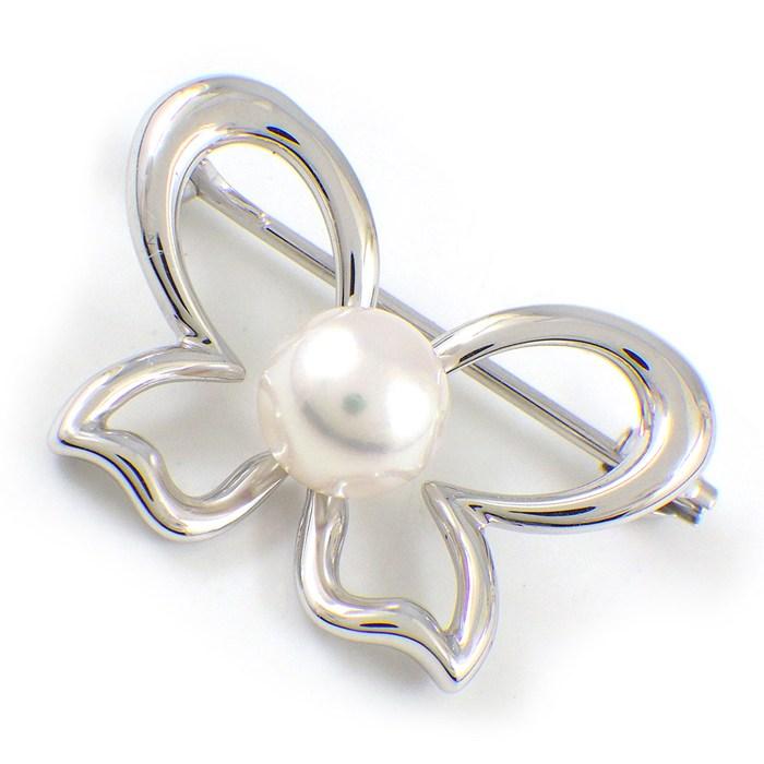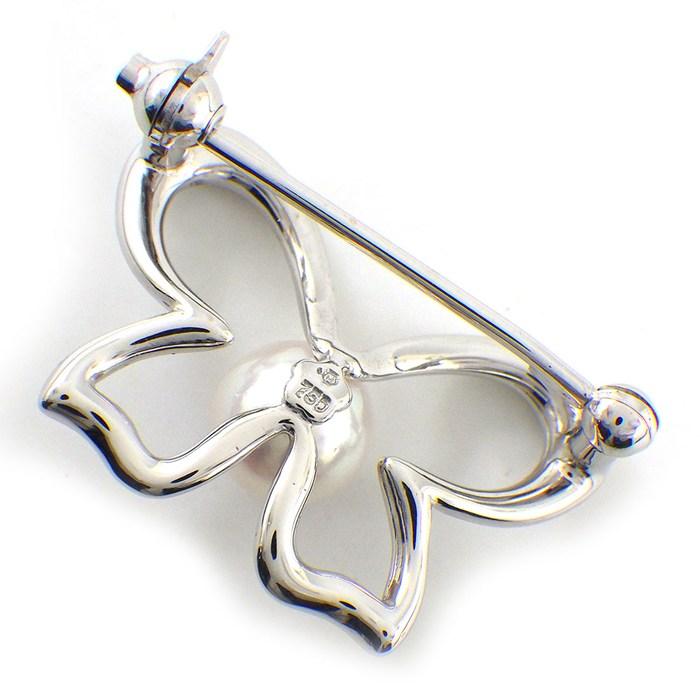 ■商品名MIKIMOTO ブローチ バタフライモチーフ あこや真珠 6.5mm珠 K18WG 【中古】