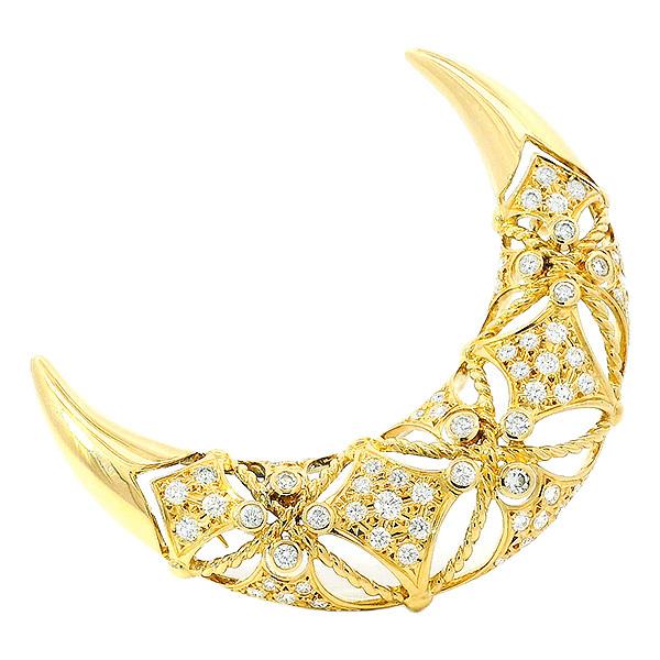 MIKIMOTO Moon Diamond 1.17ct Brooch in 18K Yellow Gold.