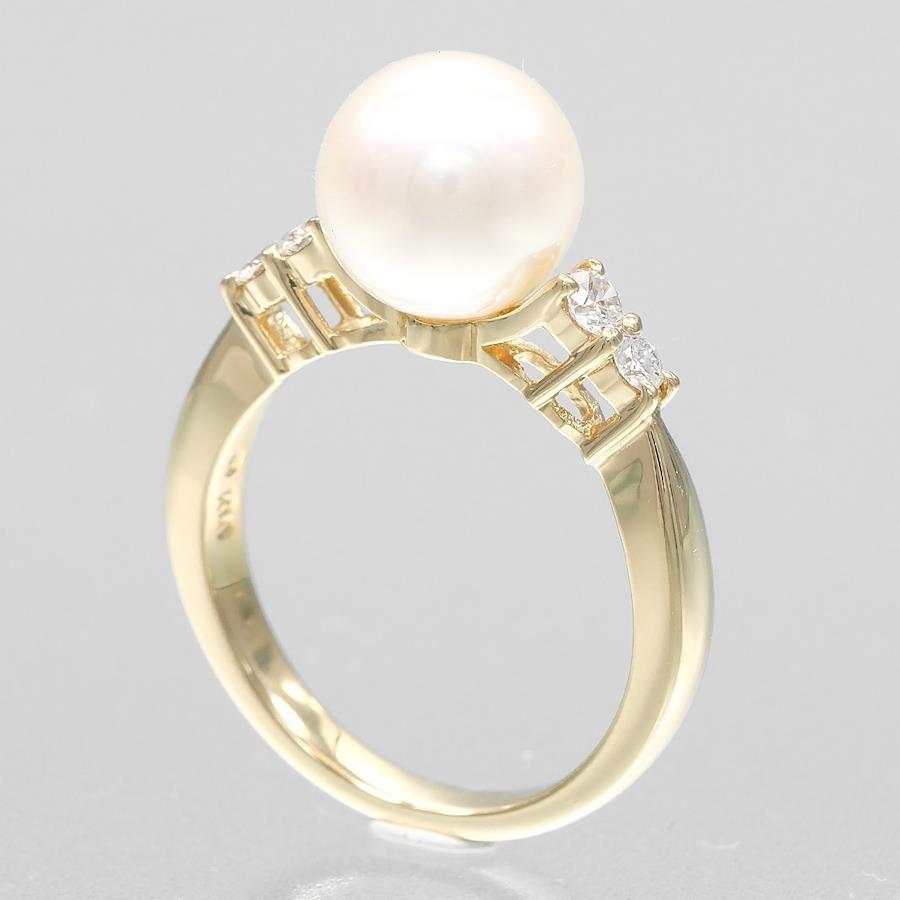 MIKIMOTO Ring, Size 8, 18K Yellow Gold, Pearl, Diamond, Approx. 3.8g, Pre-owned MIKIMOTO