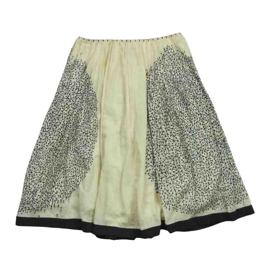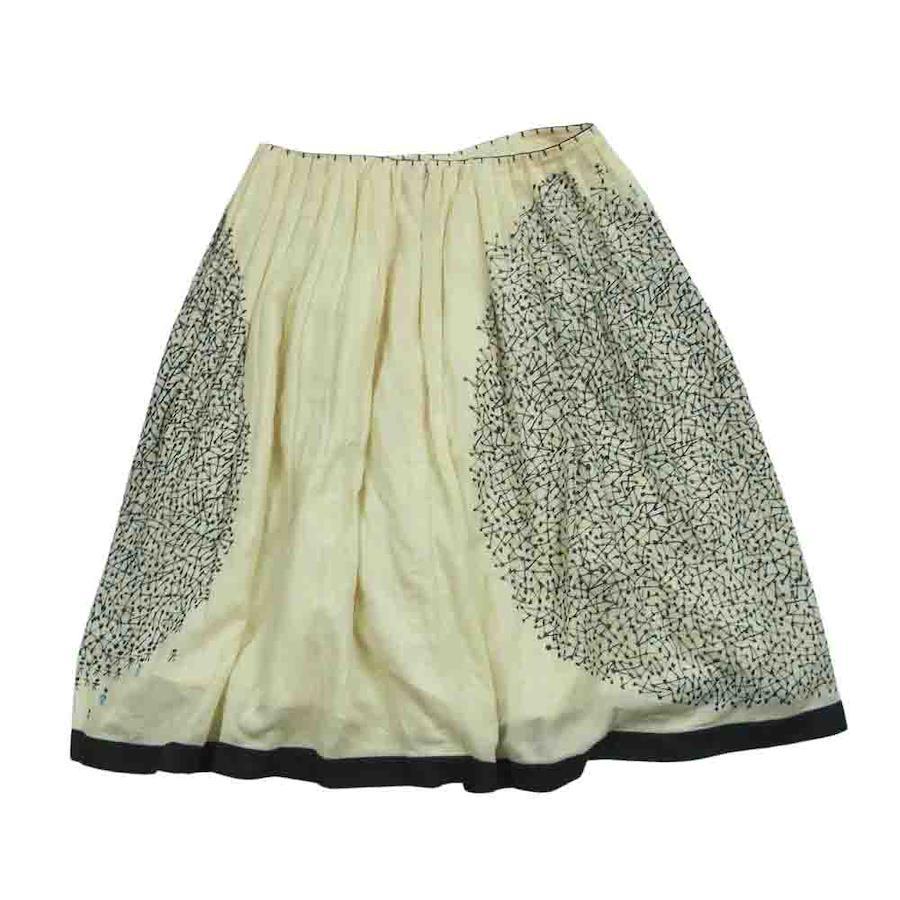 mina perhonen js5299 people cashmere-blend cotton flared gathered skirt in off-white and gray. Women's. [Used]