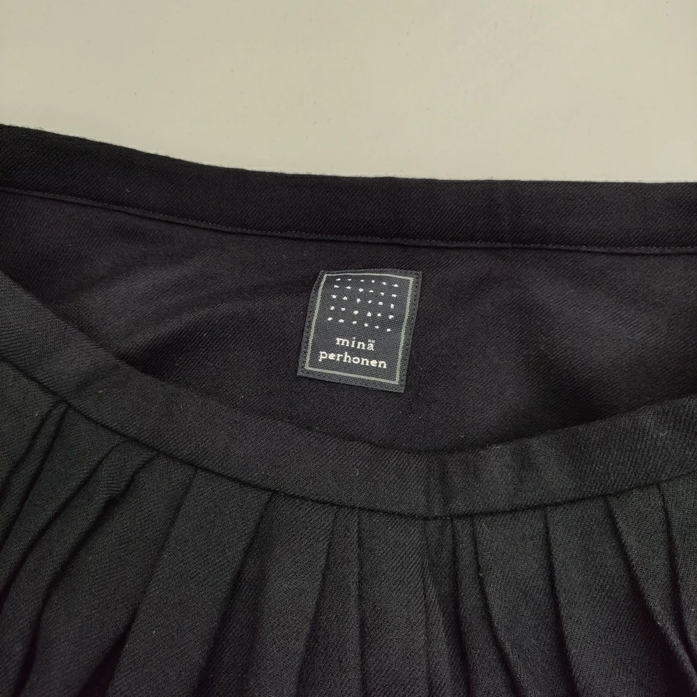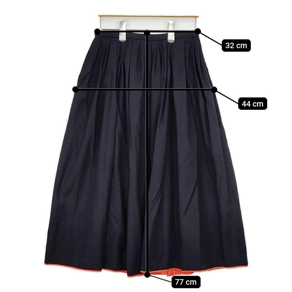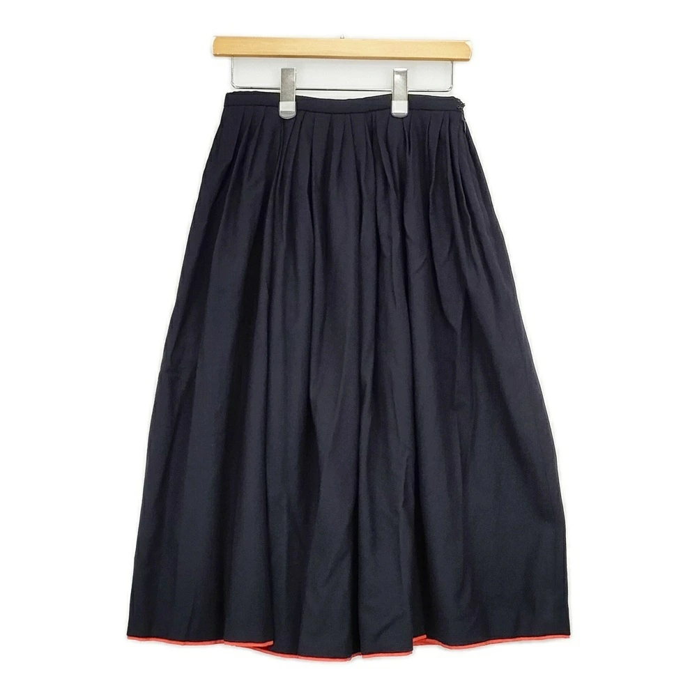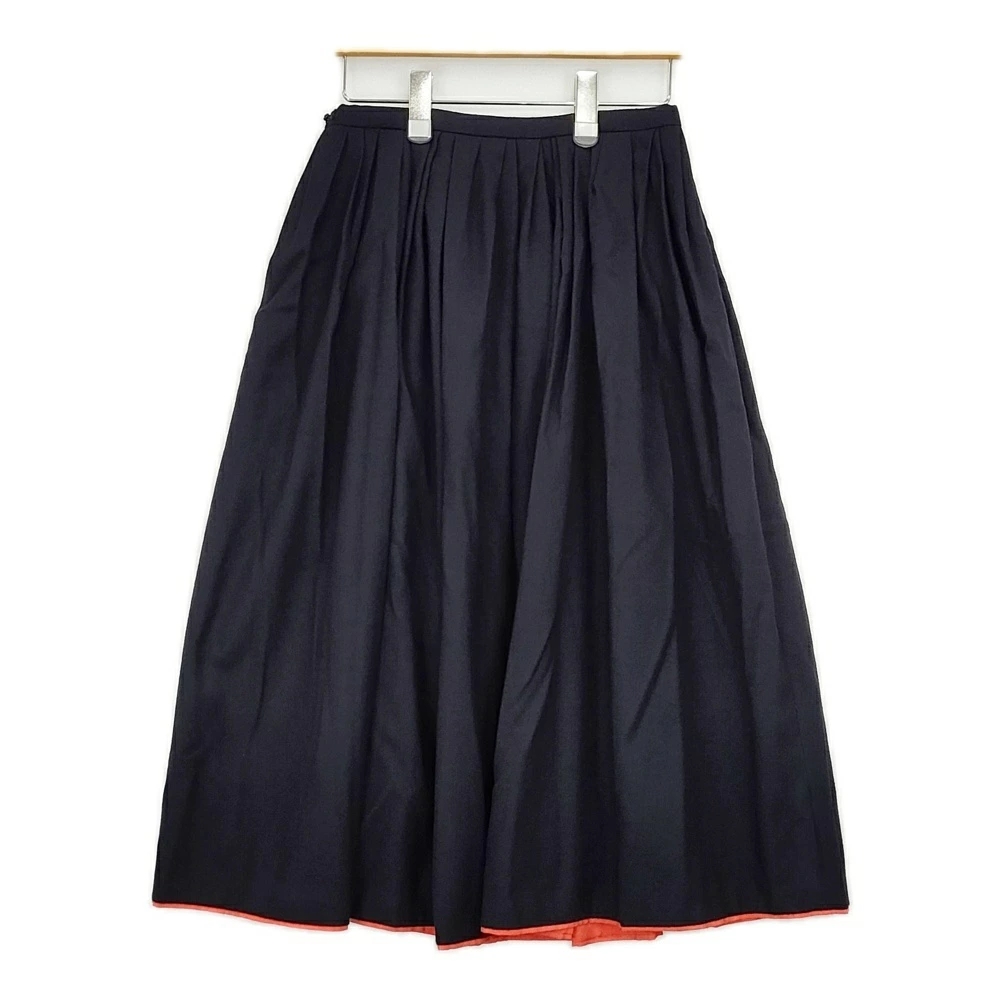 mina perhonen ua5987 Wool Tuck Skirt, Size 36, Tranquil, Two-Tone Long Skirt, Navy and Orange, Women's, Pre-owned, Mina Perhonen, 5-1111T