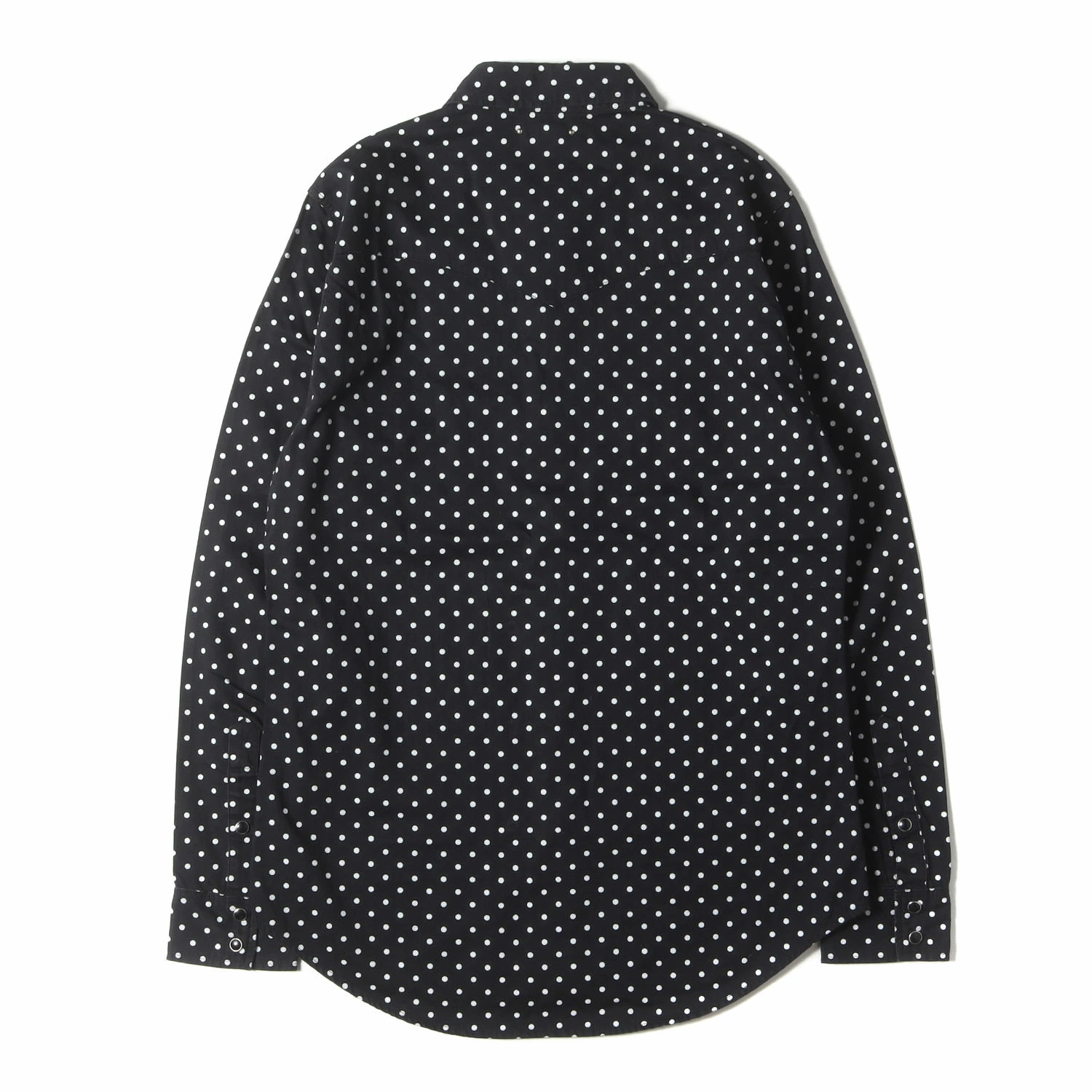 | 商品説明 | ・柔らかくやや薄手のコットンデニム生地 ・ポルカドット柄プリント ・ウエスタンヨーク ・フロントスナップボタン ・両胸ポケット ・ラウンドカット |
