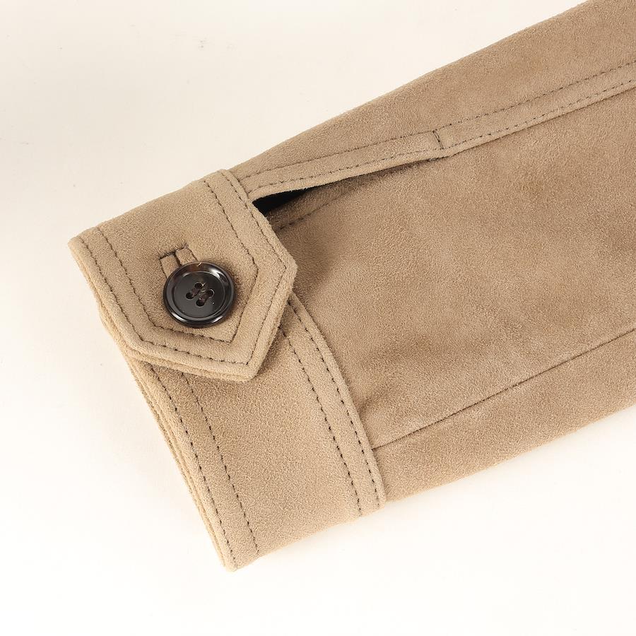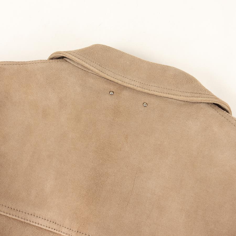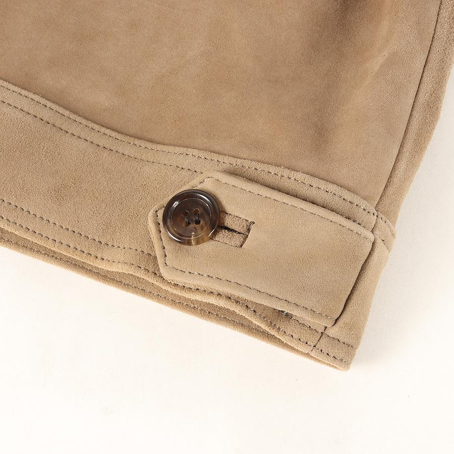 | 商品説明 | ・しっかりとした堅牢なゴートレザースウェード地 ・フロント4つボタン ・ウエストストラップボタン |