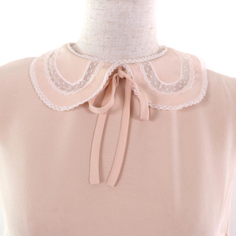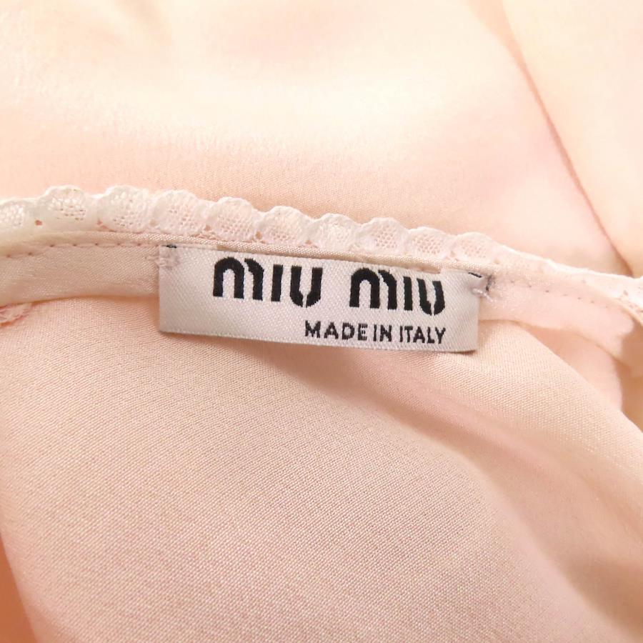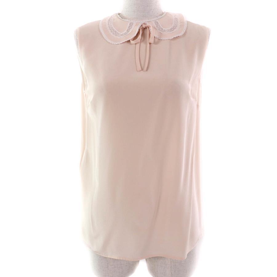 Miu Miu Sleeveless Pink Beige Silk Blouse with Lace and Ribbon Design, MT1487
