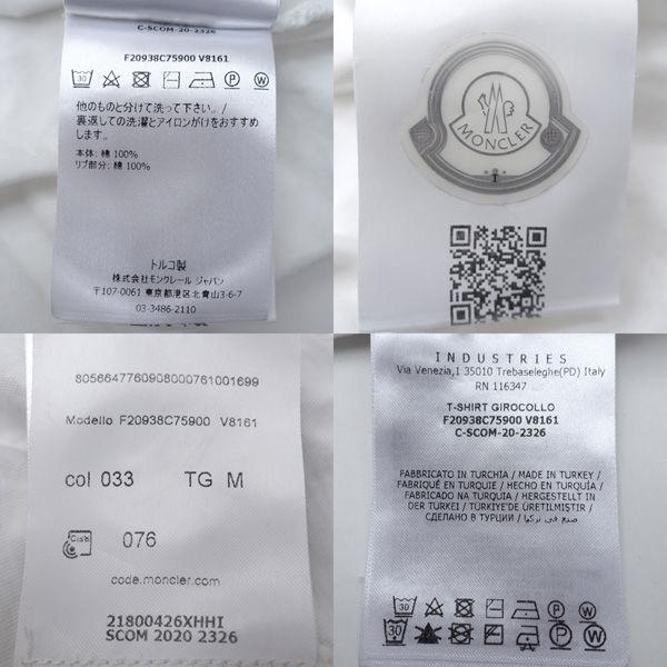 ・メーカー :MONCLER / モンクレール・製品型番 :F20938C75900・サイズ :表記サイズ:M,肩幅 (約cm):43,身幅 (約cm):48,着丈 (約cm):66.5,袖丈 (約cm):20,・色(柄)の系統:ホワイト・デザイン :(メンズ)トップス/Tシャツ・素材 :綿100%