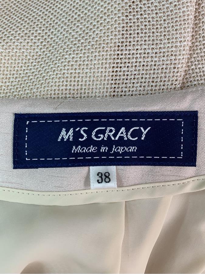 【管理番号】0240362h0232965【ブランド・アイテム】M'S GRACY スカート【性別タイプ】レディース【表記サイズ】38【実寸サイズ】総丈:約60.0cmウエスト:約66.0cm伸縮:なし【カラー】ベージュ【素材】画像参照【状態の詳細】USED品ではありますが、目立つダメージや大きな汚れのないコンディションのよい美品です。【汚れ・シミ】特に目立つものはございません。【キズ】特に目立つものはございません。【毛玉・毛羽立ち】特に目立つものはございません。【使用感】少ない〜普通【こんな方におススメ】USED品でも汚れやダメージが少ないお品物をお探しの方にオススメ【付属品】ウエストリボン(取り外し可)スペアボタン紙タグ【備考】販売年月:2021型番:117309参考価格:23100円