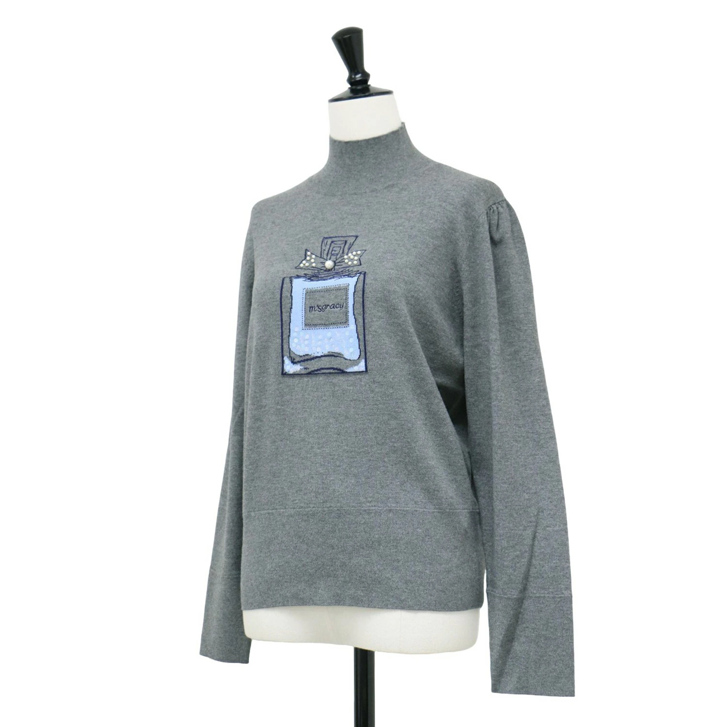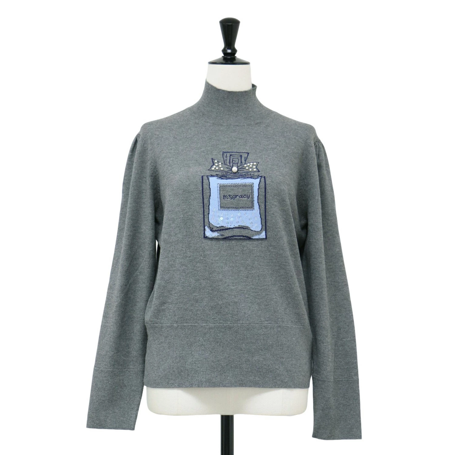 MS GRACY M's Gracey Knit, Gray, Size 40 (L) / Fall/Winter 2024 Perfume Bottle High-Neck Pullover / Long Sleeve Perfume Bottle Pearl Rayon Washable / Women's Top Sweater / Pre-owned / Excellent Condition / K4614