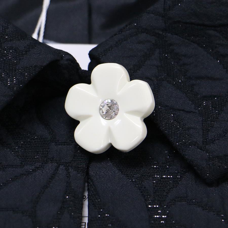 | 商品説明 | ・ビジュー付きフラワーボタン ・リボン柄 ・襟元ギャザーあり