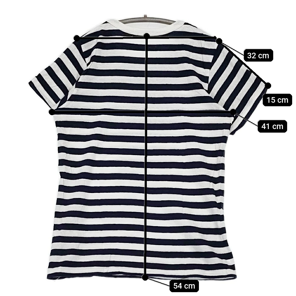 | 実寸サイズ | 肩幅:約32cm 着丈:約54cm 身幅:約41cm 袖丈:約15cm ※採寸画像がある商品はハンガーに吊るした状態での計測のため、平置きでの採寸とは差が生じる場合がございます。平置きでの実寸サイズをご希望の場合は、ご購入前に必ずご質問ください。 ※記載以外のサイズが合わないことを理由とした返品はできませんので、 記載部分以外で実寸サイズの気になる箇所があれば必ず購入前にご質問ください。 |