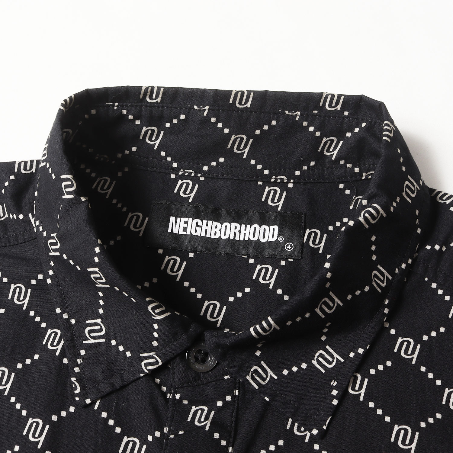 NEIGHBORHOOD Shirt, Black, Size L | 22SS Monogram Cotton Short Sleeve Shirt (MONOGRAM / C-SHIRT. SS) | Men's Casual Shirt, Pre-owned, K4614