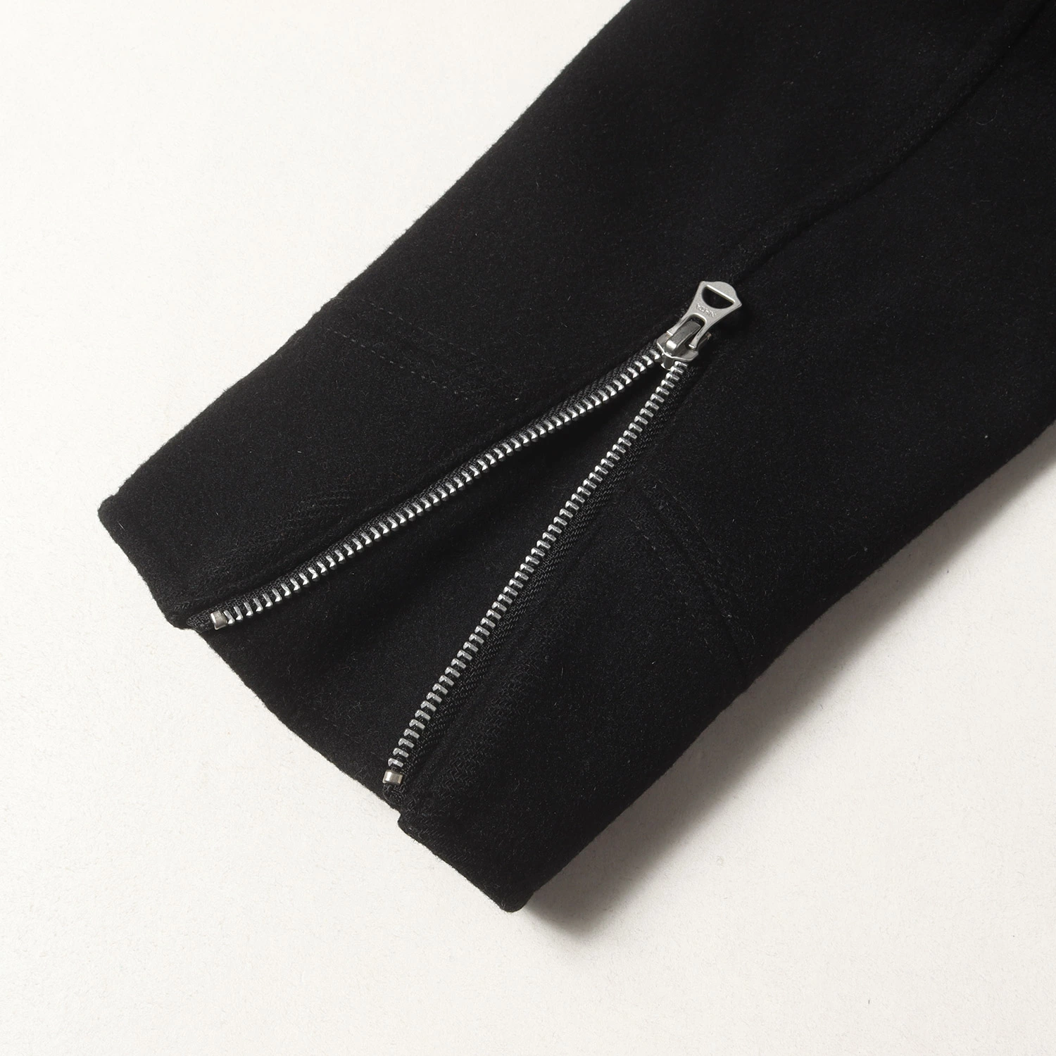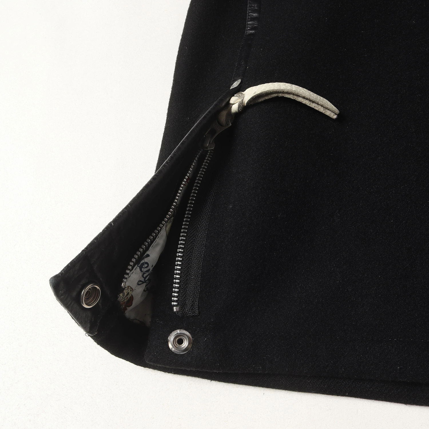 - しっかりとしたメルトンウールとカウレザーのコンビで仕上げたポリスマンジャケットです。裏地はブルドッグ柄のキルティングでデザインされております。