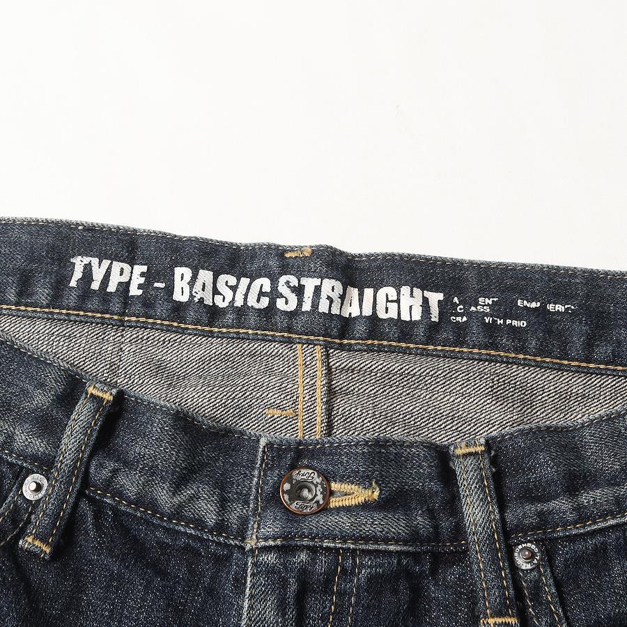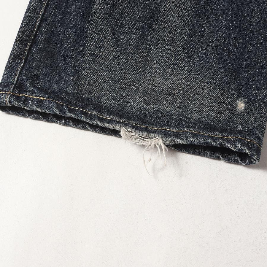 - 毎期定番のリアルなヴィンテージ加工が施されたジッパーフライデニムパンツです。セルビッチ付きの14ozデニムを使用し、やや太めのベーシックシルエットで仕上げた一本になります。