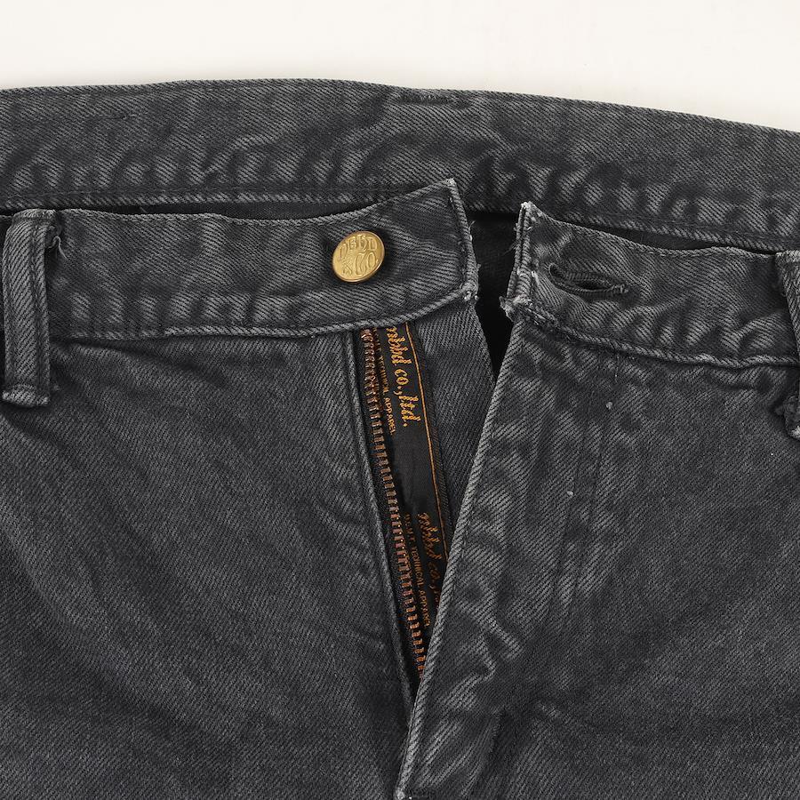 ウォッシュ加工を施したナローシルエットのジッパーフライカラーデニムパンツになります。