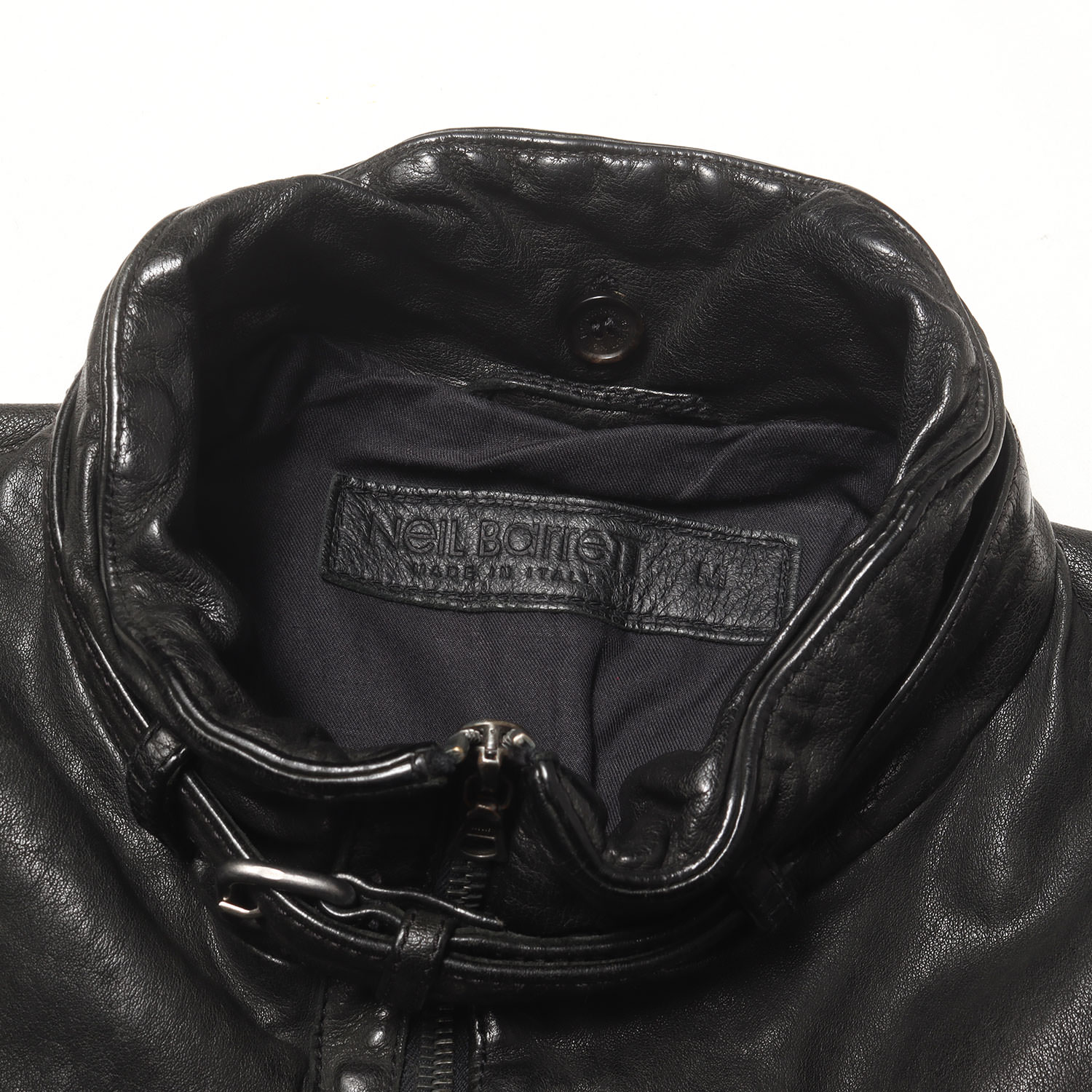 Neil Barrett Black Washable Calf Leather Single-Breasted Rider's Jacket (BPE02 0706), Size M | Men's Outerwear, Blouson, Pre-owned, Excellent Condition, K4634