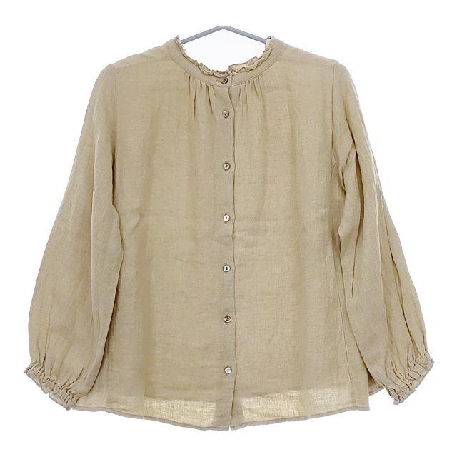 nest Robe Frill Collar Linen Blouse with Distressed Dye Wash Finish (Product Code: 01174-1129-7) Beige Women's Blouse/Shirt (Used) Item Number: 5-0421M