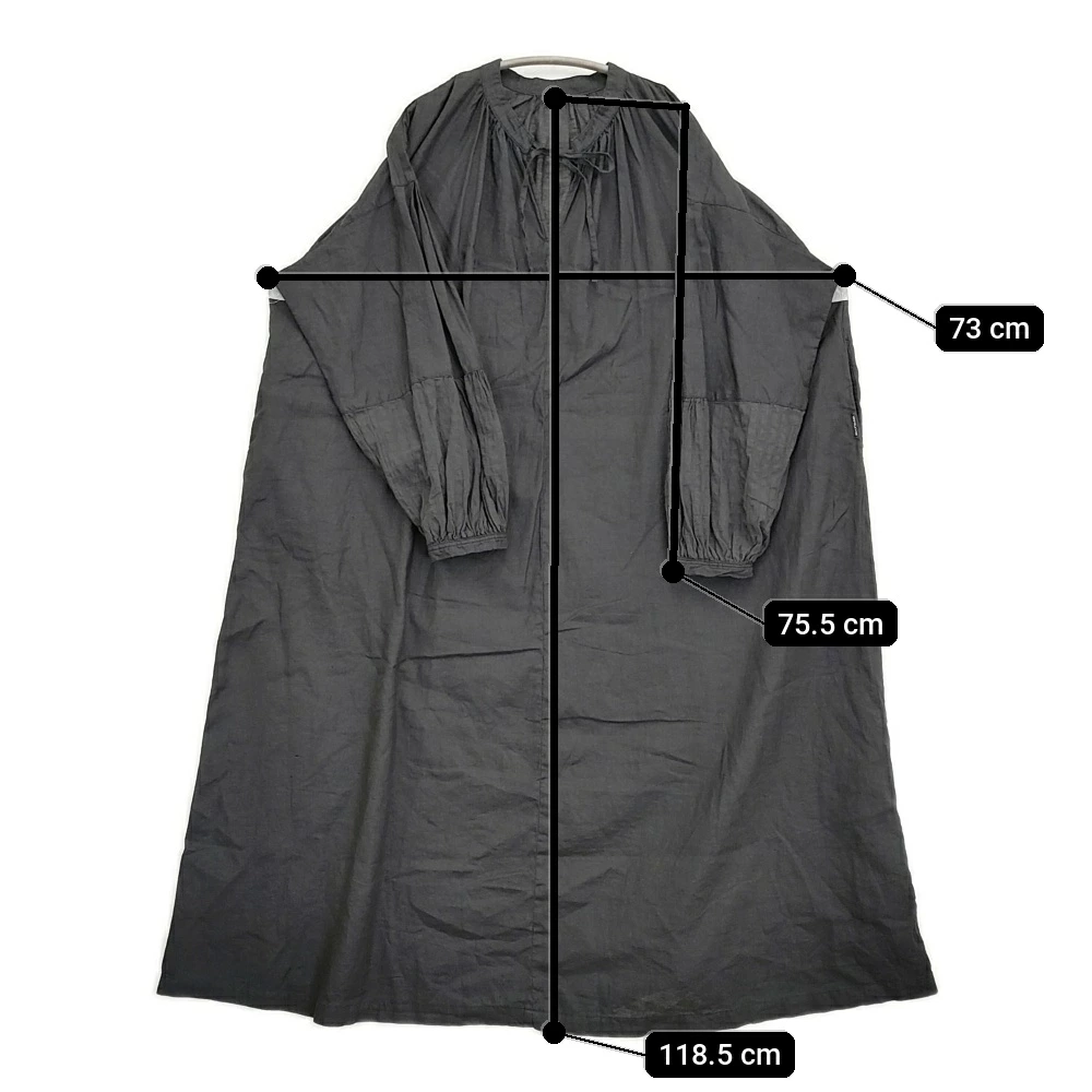 | 実寸サイズ | 着丈:約118.5cm 身幅:約73cm 裄丈:約75.5cm ※採寸画像がある商品はハンガーに吊るした状態での計測のため、平置きでの採寸とは差が生じる場合がございます。平置きでの実寸サイズをご希望の場合は、ご購入前に必ずご質問ください。 ※記載以外のサイズが合わないことを理由とした返品はできませんので、 記載部分以外で実寸サイズの気になる箇所があれば必ず購入前にご質問ください。 |