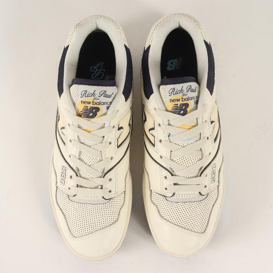 - こちらはアメリカのスポーツエージェント”RICH PAUL(リッチ ポール)”とのコラボアイテムになります。80年代にリリースされたバスケットボールシューズを復刻した“BB550”をノースカロライナ大学カラーで仕上げた一足です。