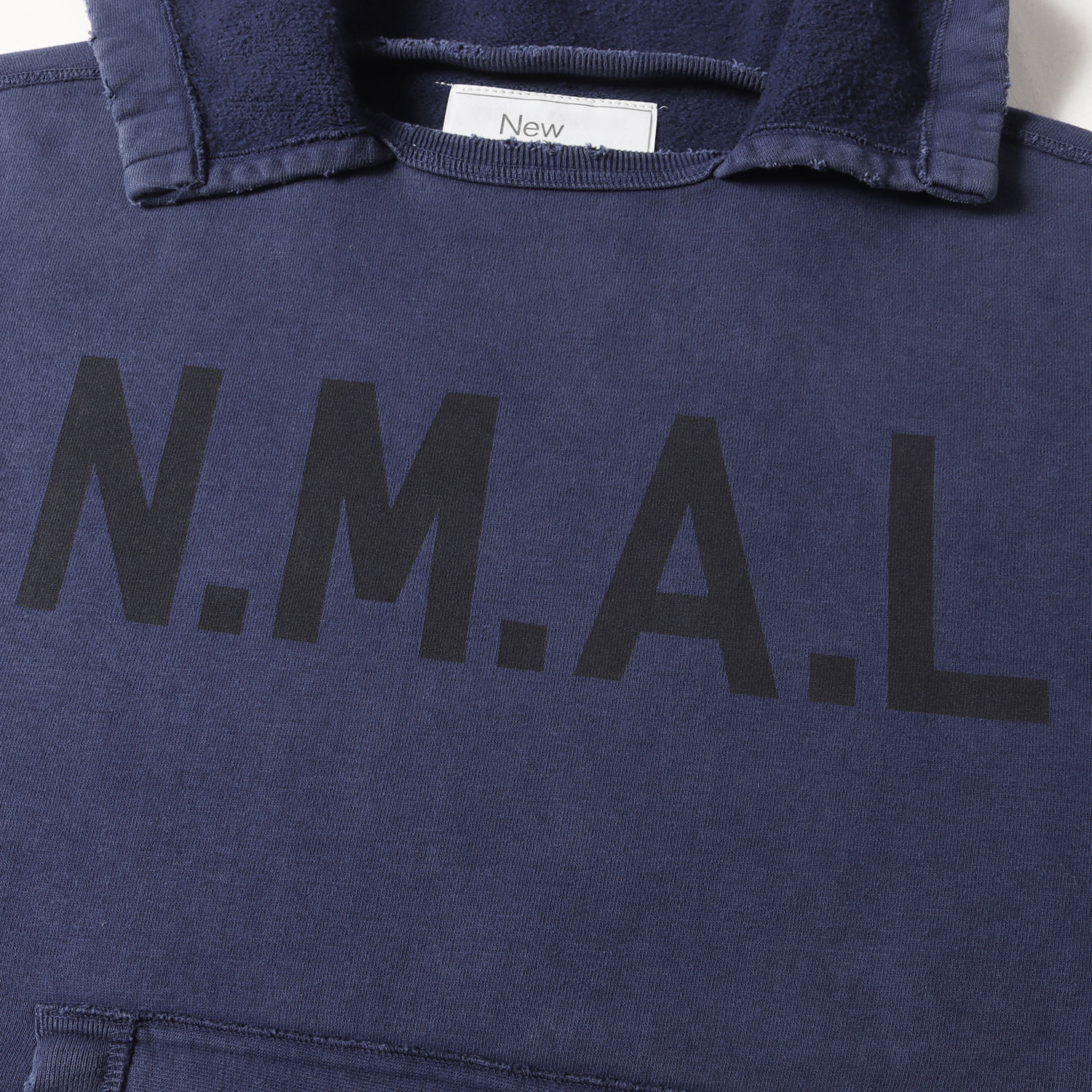 - こちらはKAPTAIN SUNSHINE(キャプテンサンシャイン)による別注モデルです。吊り裏毛コットン生地を使用し、ダメージやフェードによるヴィンテージ加工を施した後付けフードスウェットパーカーです。フロントにはN.M.A.Lと染込みロゴプリントをデザインしています。流行りの短丈BOXシルエットのFREE SIZEがポイントです。