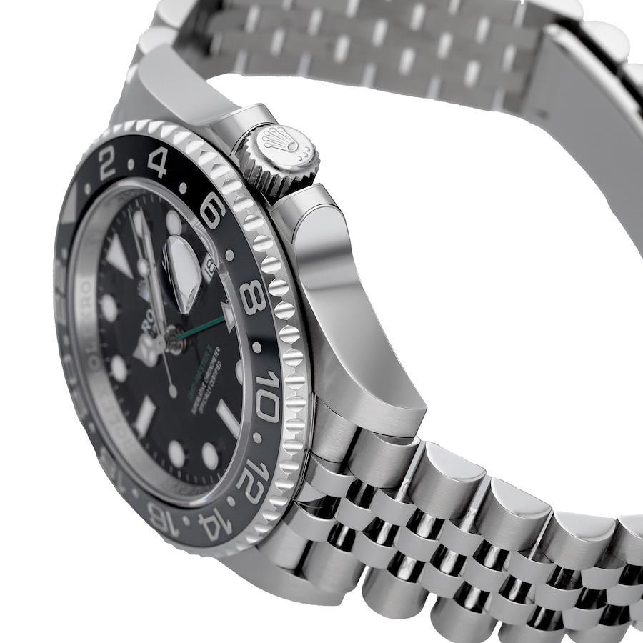 お問合せコード:126710GRNR ジュビリーブランド:ロレックスシリーズ:GMTマスターⅡケース素材:ステンレススチールベルト素材:ステンレススチールダイアルカラー:ブラックムーブメント:自動巻(Cal.3285)ケースサイズ:40mm(リューズ除く)防水:100mガラス:サファイアガラス仕様:回転ベゼル、日付表示、GMT機能付属品:純正BOX、国際保証書(2025年7月)保証:当店購入日より3年保証メーカー参考価格:¥1,664,300-税込【2024年新作】ロレックス GMTマスターII 126710GRNRジュビリーブレスレットはツヤのある、ブラックとグレーのセラミックベゼルとなっております。ジュビリーブレスレットは、柔らかな着け心地でデザインと技術の完璧な融合であり、快適性を備えています。オイスターロックフォールディングクラスプは、ロレックス独自の発明であり、長さを約5 mm延長させることができ、あらゆる場面でより快適な装着感が実現できます。ブラックラッカーダイアルには、グリーンで「GMT-Master Ⅱ」と記され、24時間針にも、このカラーが用いられています。Cal.3285はロレックスが特許を取得したクロナジーエスケープメントを採用し、高いエネルギー効率により約70時間のロングパワーリザーブとなっています。※新品であっても保護シールがついていない物もあります。