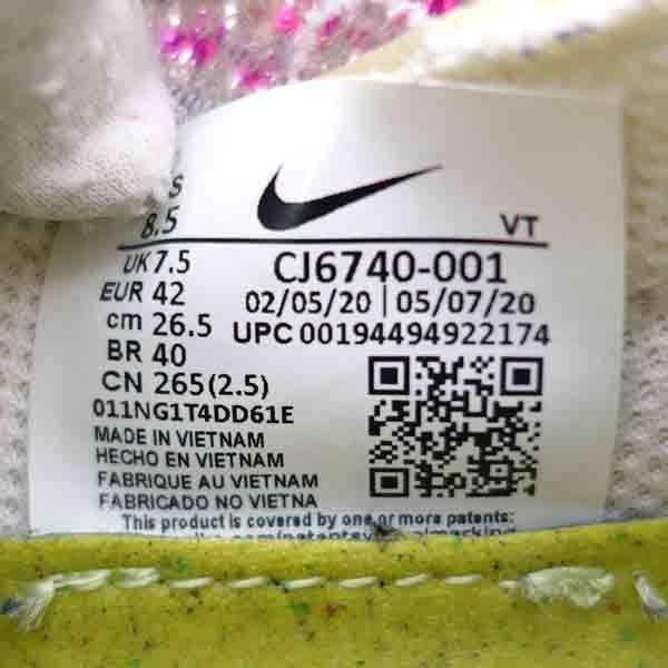 ・メーカー :NIKE / ナイキ・製品型番 :CJ6740-001・サイズ :表記サイズ:8.5(26.5cm),アウトソール (約cm):28,甲の横幅 (約cm):9,ヒール/ソールの高さ (約cm):2.5,全高 (約cm):13,重量(片足) (約g):310,・色(柄)の系統:ホワイト マルチカラー・デザイン :(メンズ)スニーカー (メンズ)26.5cm