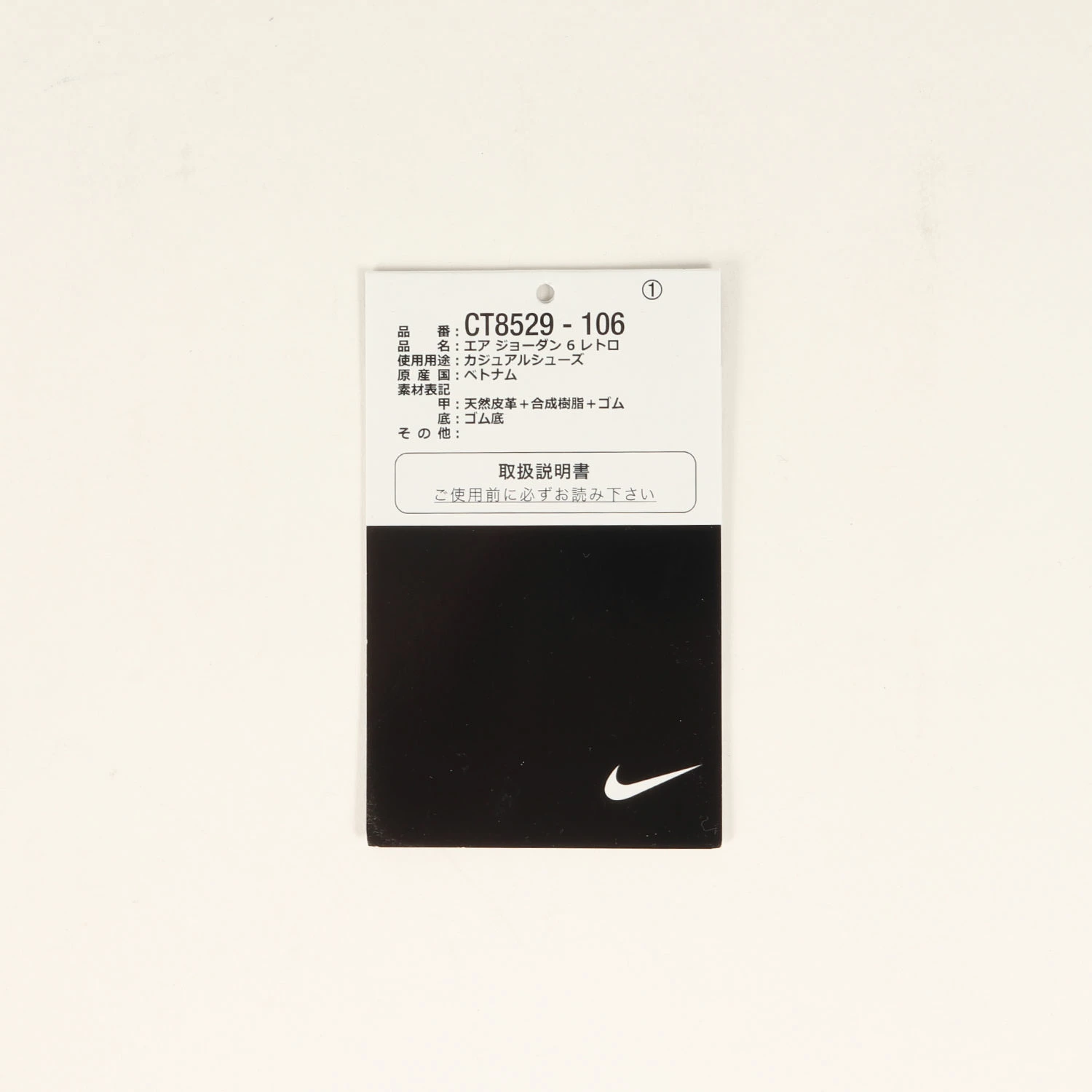 NIKE AIR JORDAN 6 RETRO CARMINE (2021 model, size 28.0cm) | White Carmine | US 10 | Men's High-Top Sneakers | Pre-owned | K4615