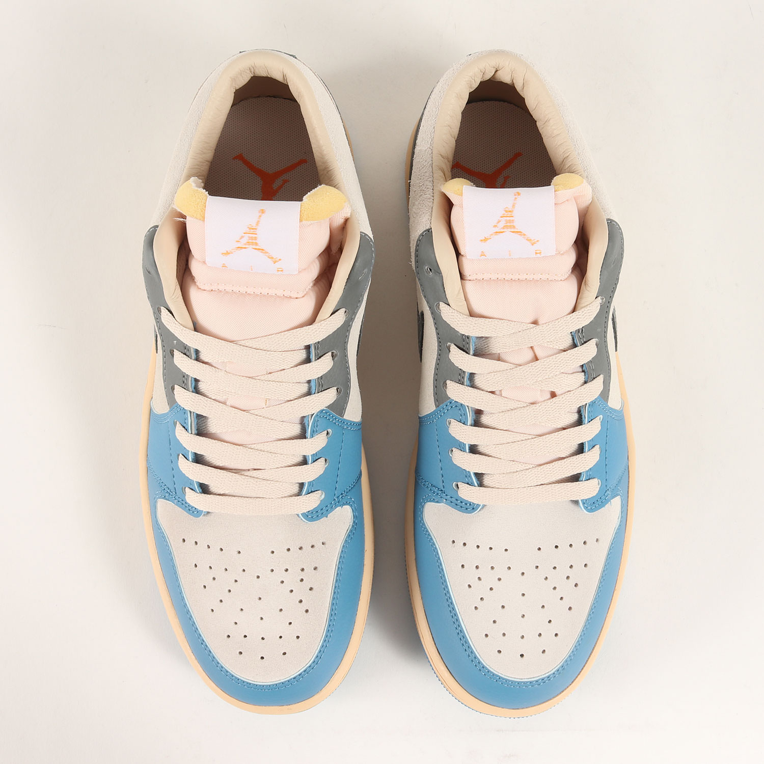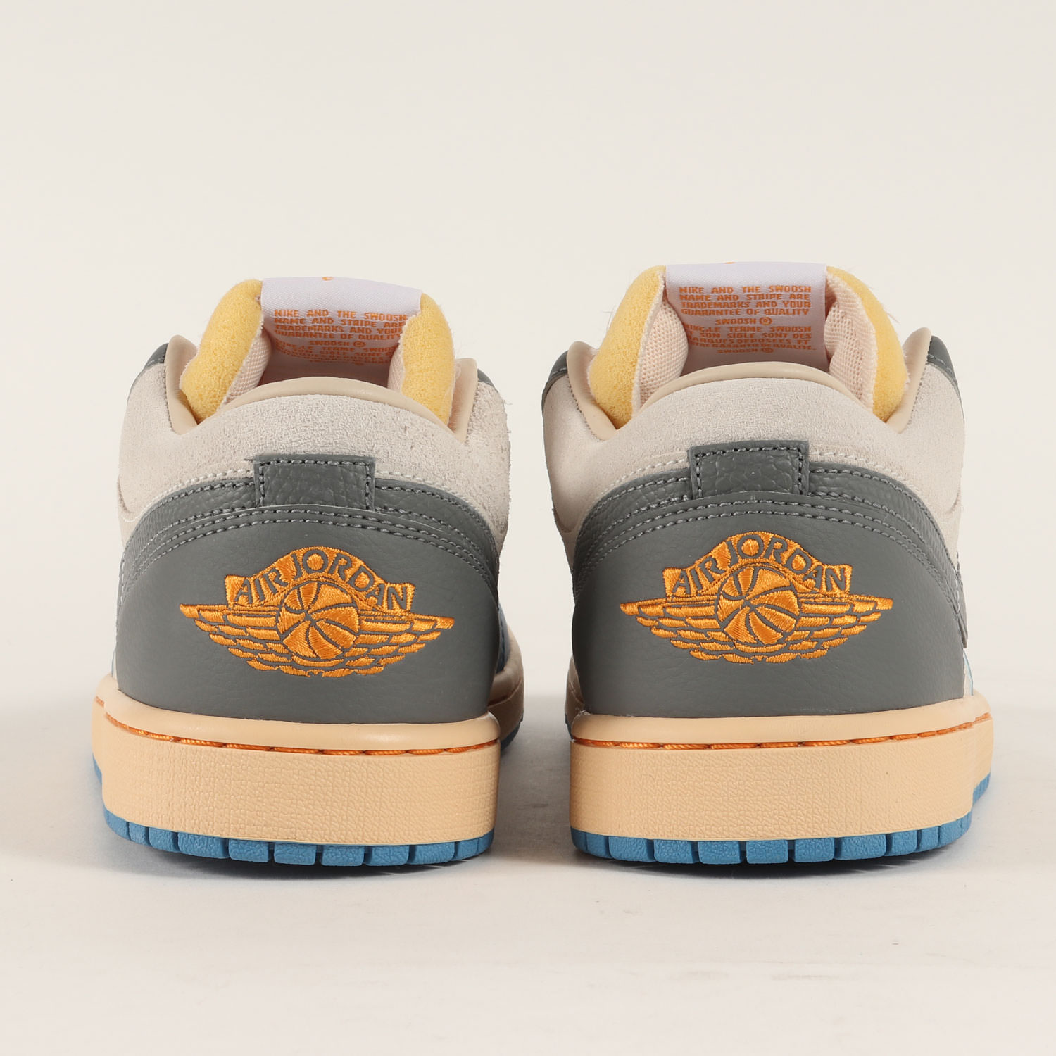 アッパーにはホワイト系グレーのスウェードを使用した通称“トーキョー 96”モデルの“AIR JORDAN 1 LOW”になります。
