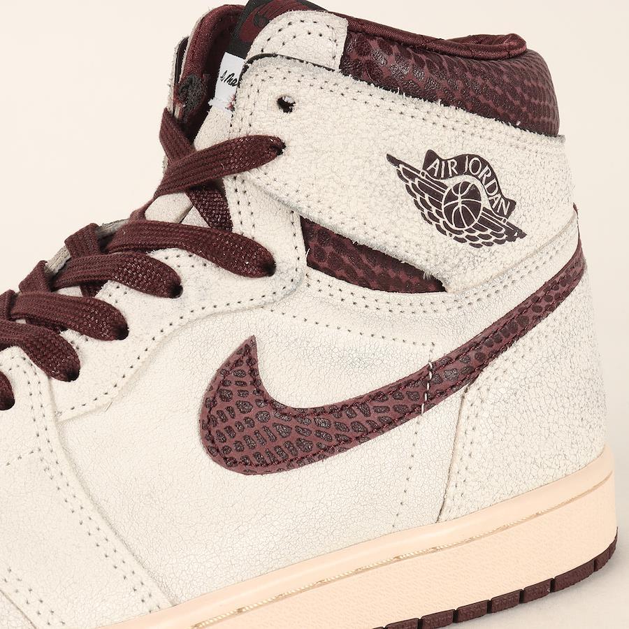 - アメリカ・アトランタ発のセレクトショップ“A MA MANIÉRE(ア マ マニエール)”とコラボした“AIR JORDAN 1 RETRO HIGH OG SP(エアジョーダン1 レトロ ハイ OG SP)”です。アッパーにひび割れのクラックレザーを使用し、スウッシュと履き口をスネーク型押しレザーで仕上げたスペシャルな一足になります。